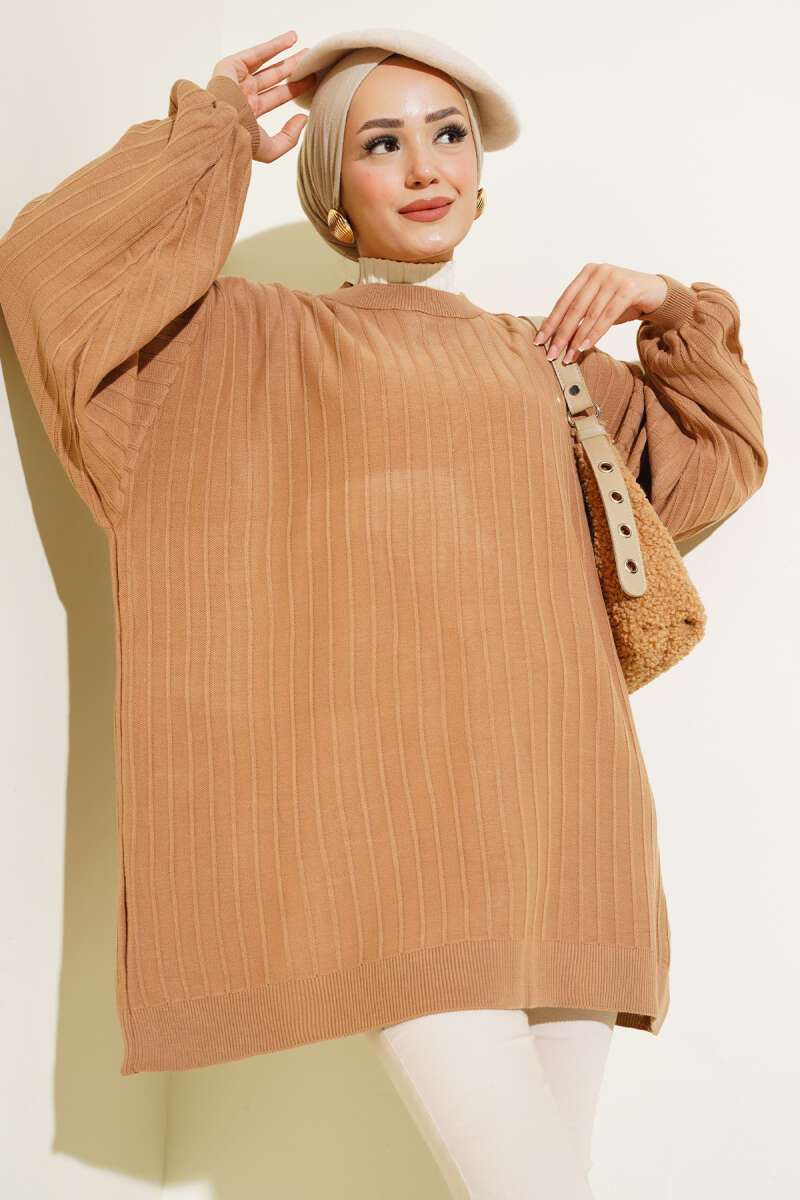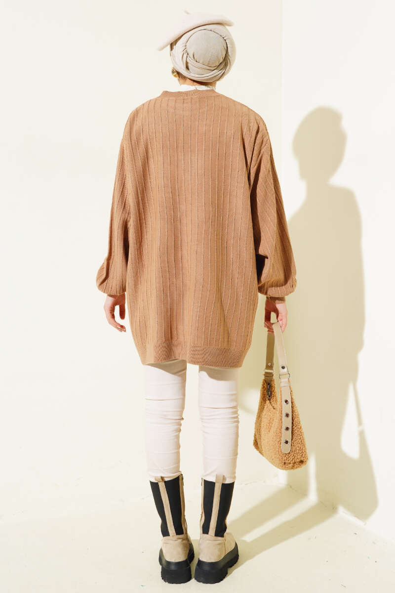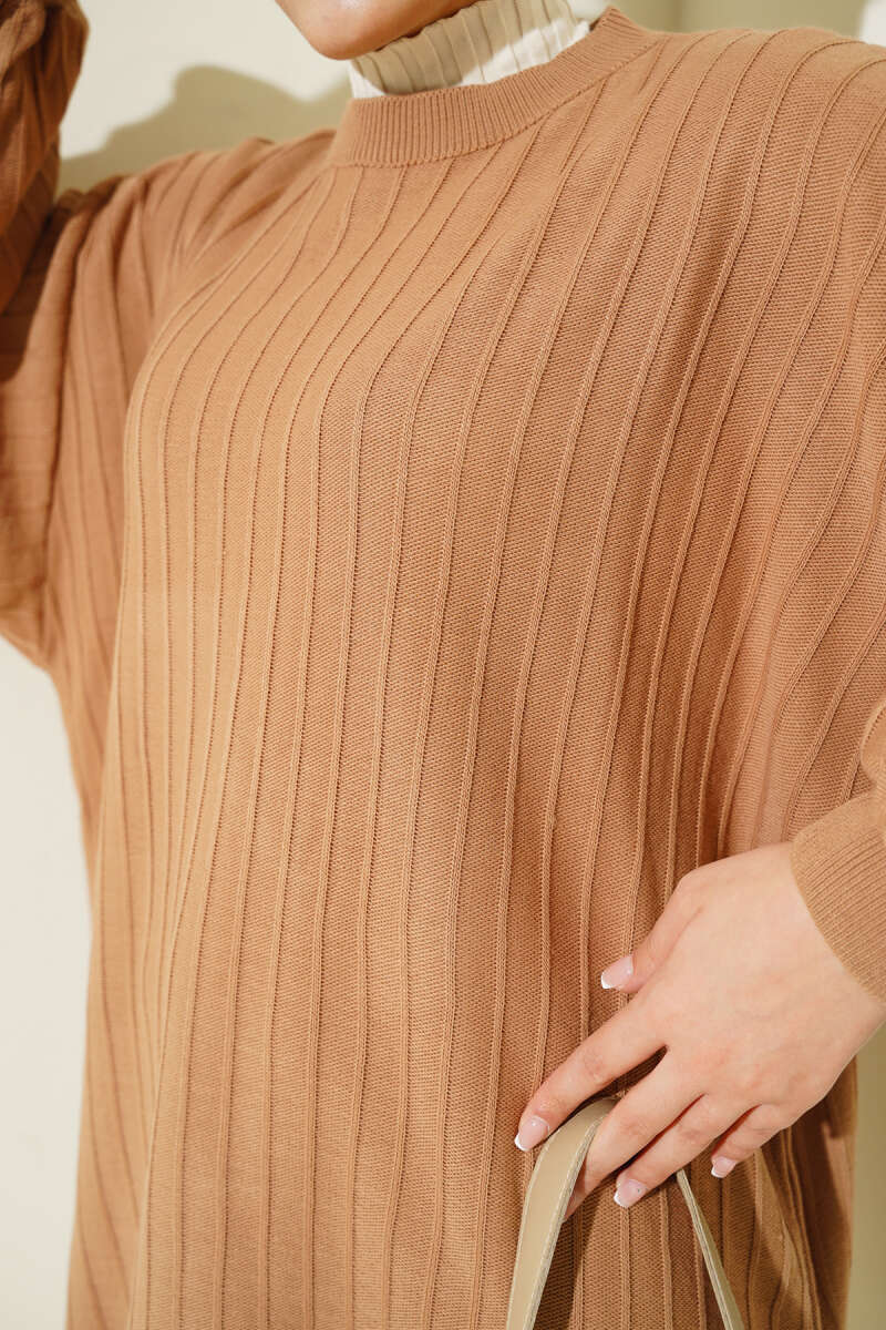 Örgü Kabartmalı Yumoş Triko Tunik Latte