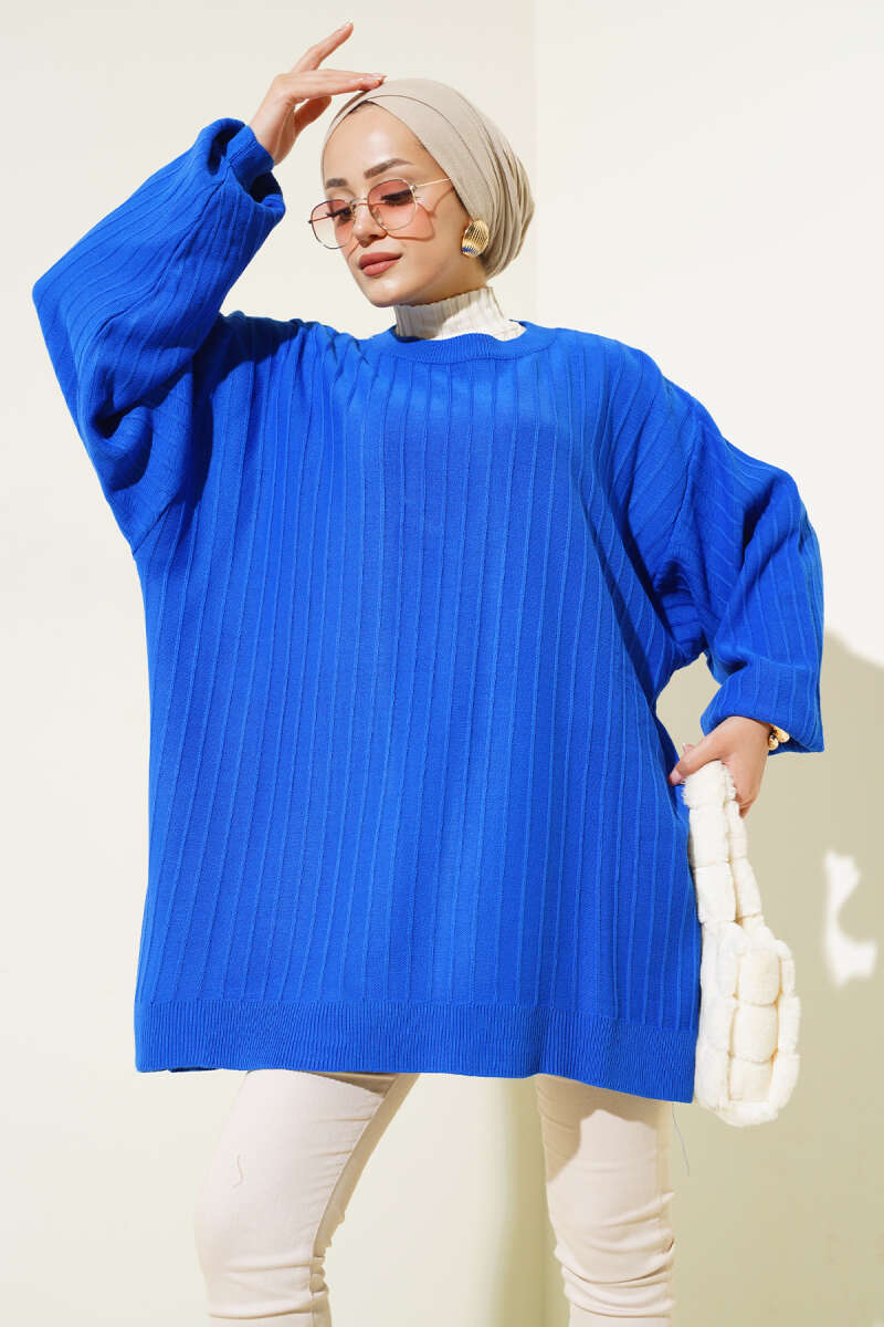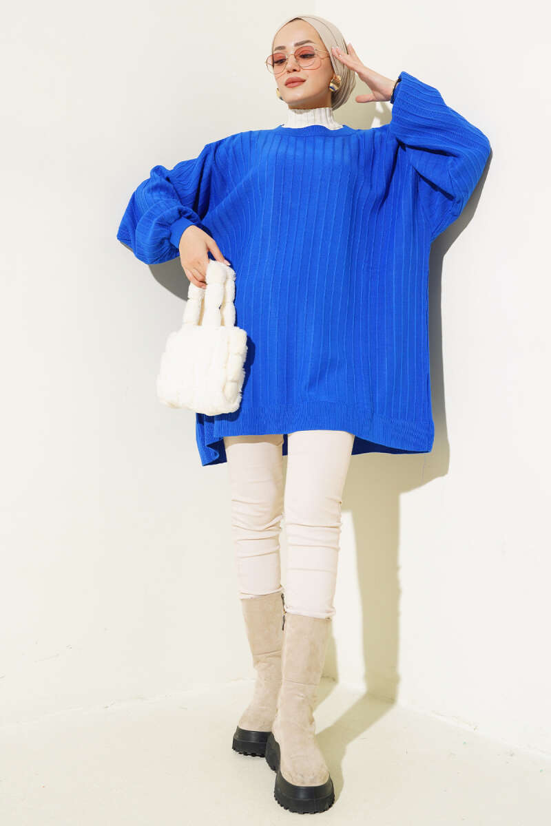 Örgü Kabartmalı Yumoş Triko Tunik Lacivert