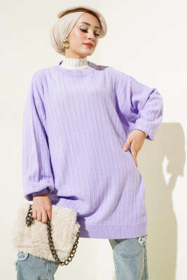 Çizgi Baklava Desen Triko Tunik Vizon
