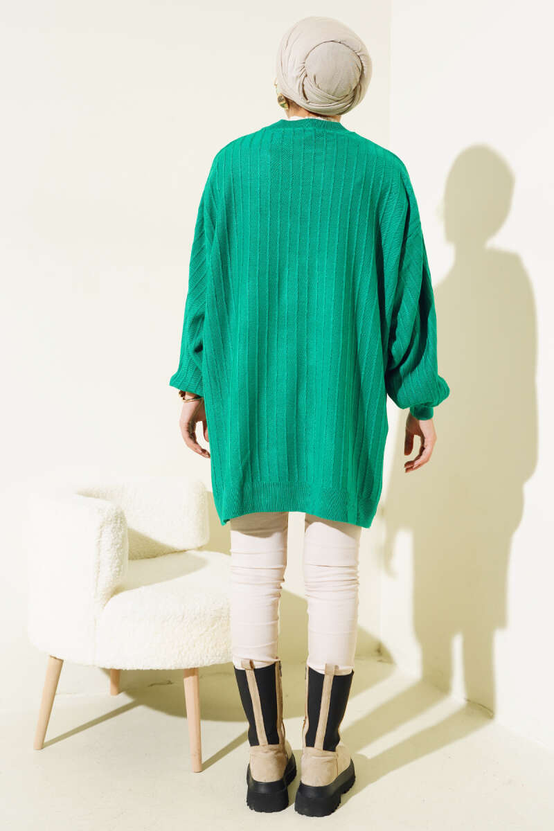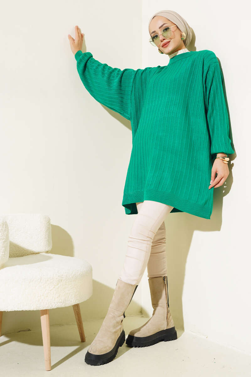 Örgü Kabartmalı Yumoş Triko Tunik Gri