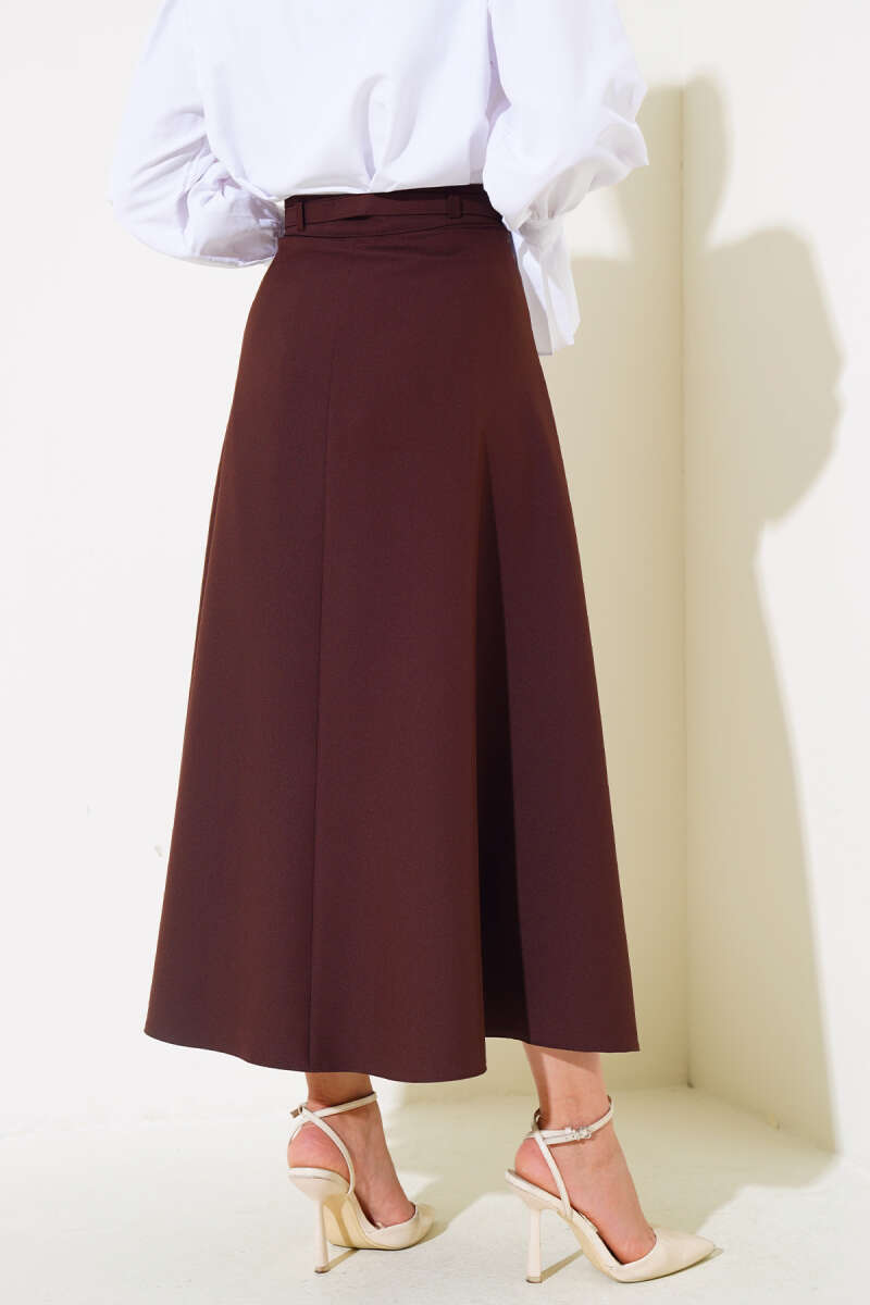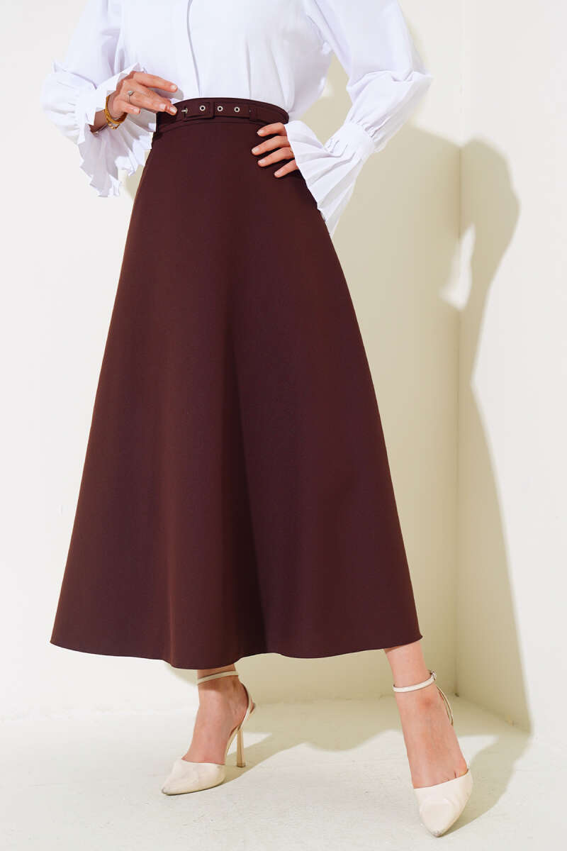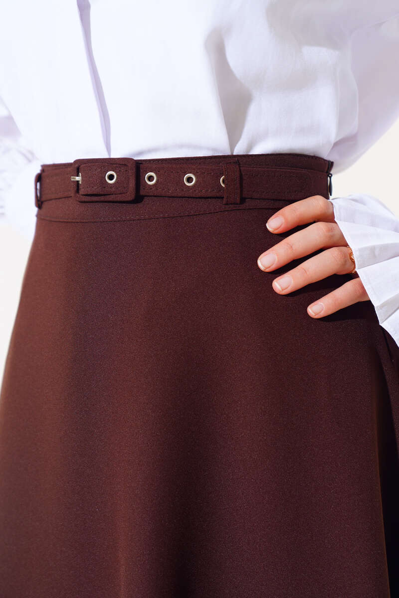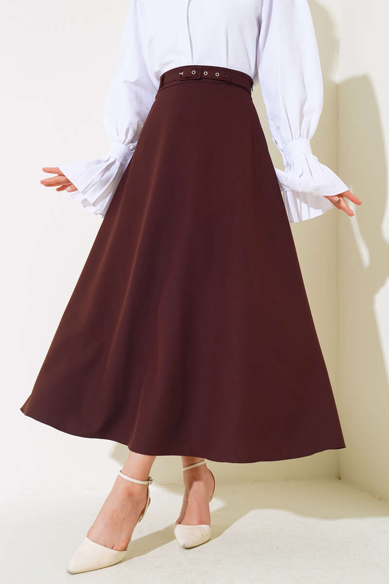 Kemer Aksesuarlı Ekoseli Etek Bordo