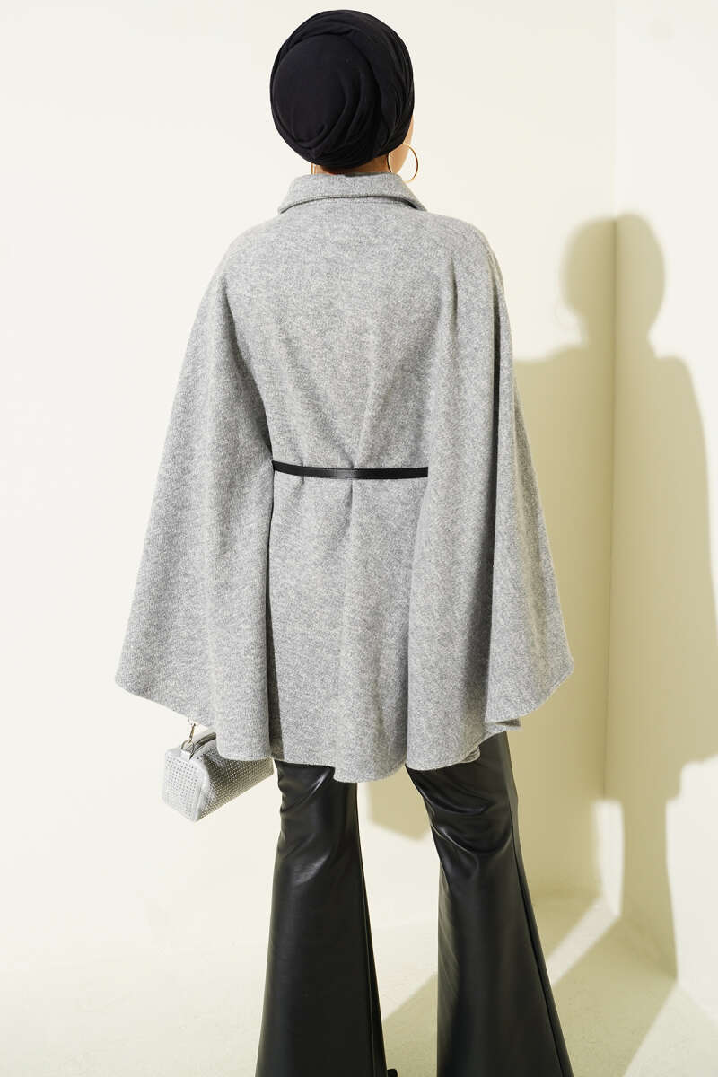 Gömlek Yaka Düğmeli Kaşe Panço Gri