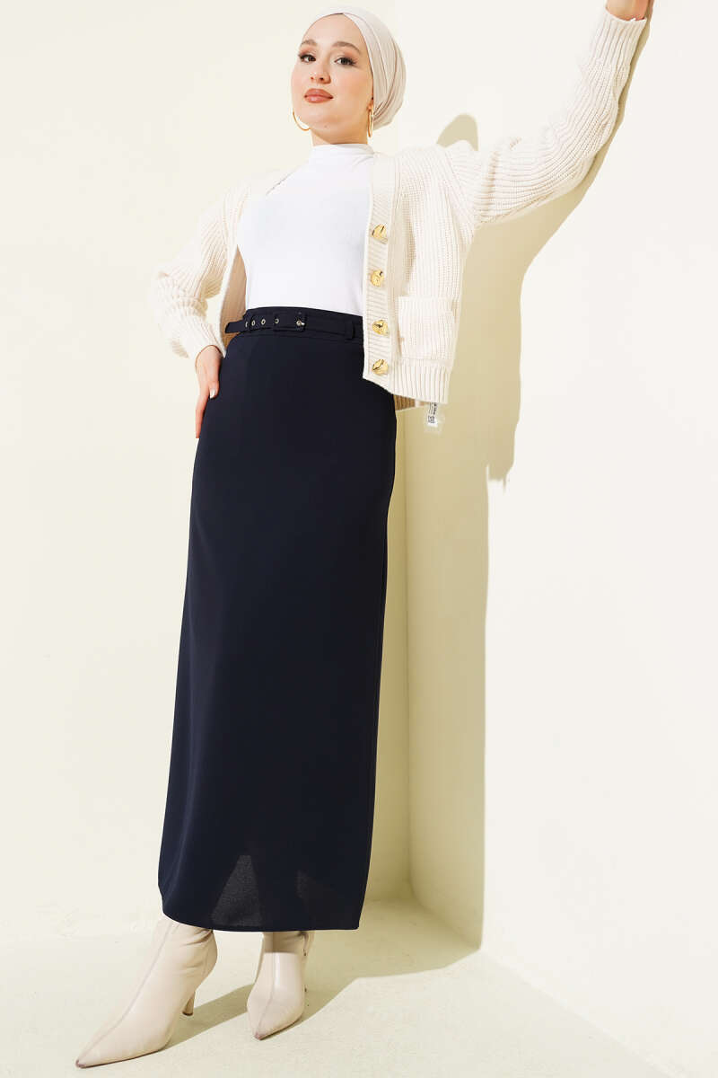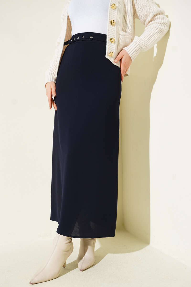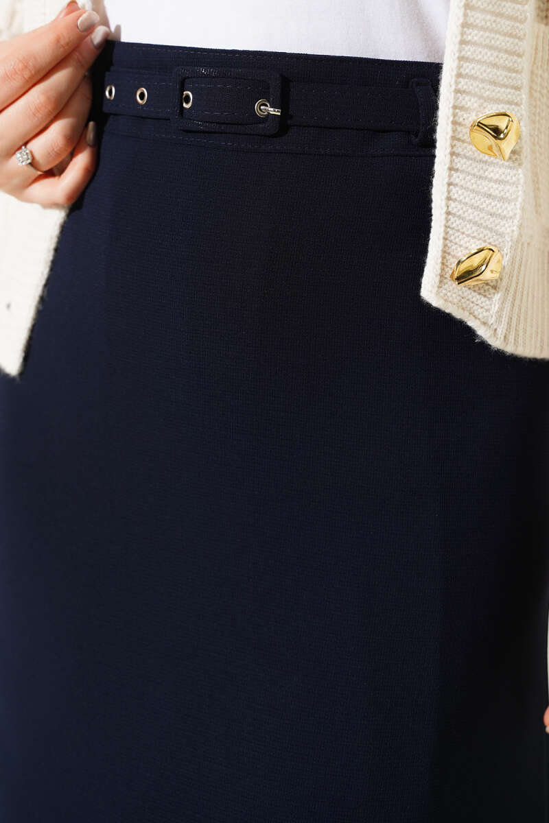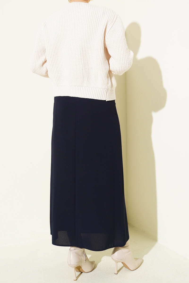Pileli Ekoseli Fermuarlı Etek Lacivert
