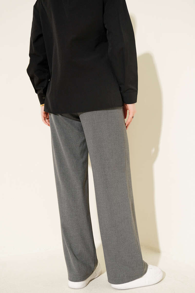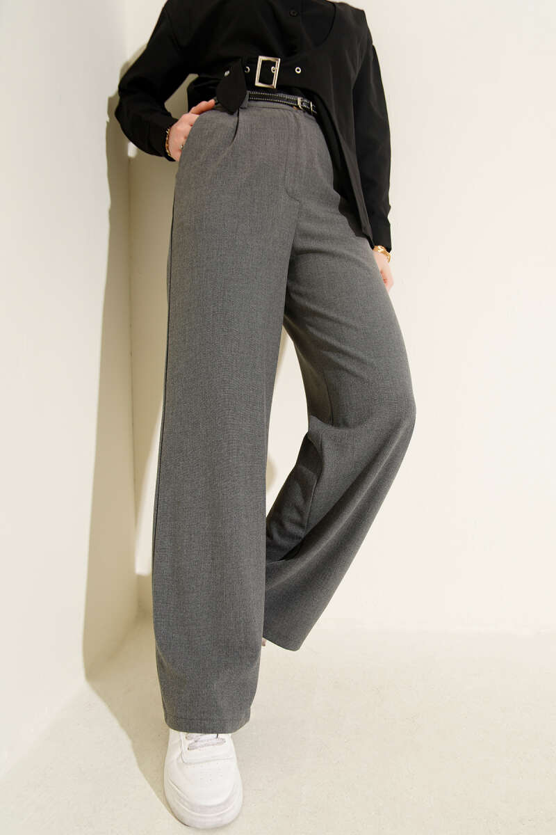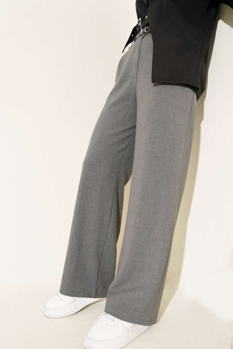 Yarım Bel Lastikli Palazzo Pantolon Gri