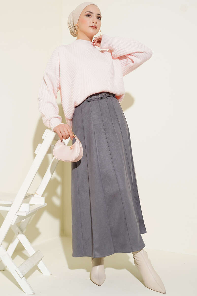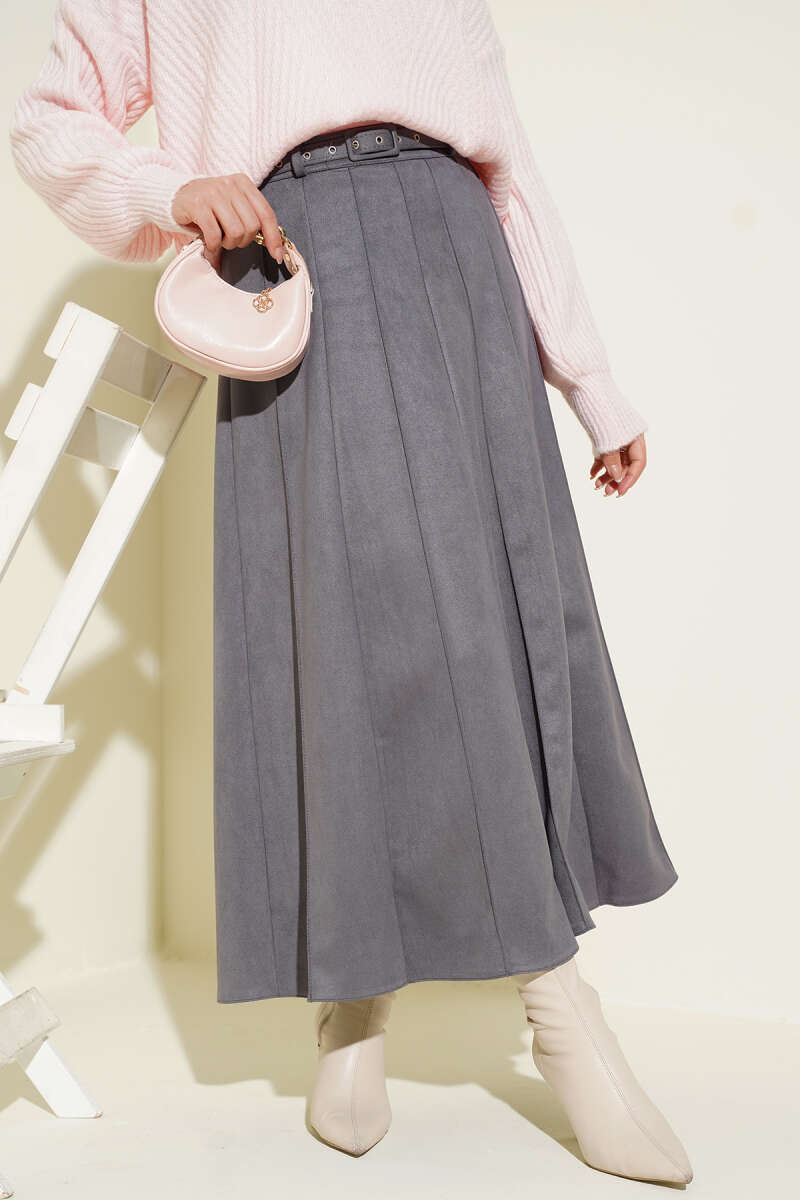 İnce Kemerli Süet Etek Siyah
