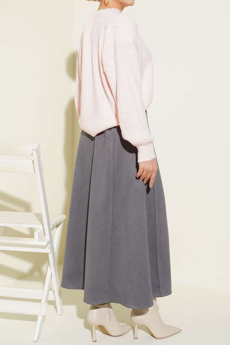 İnce Kemerli Süet Etek Taba