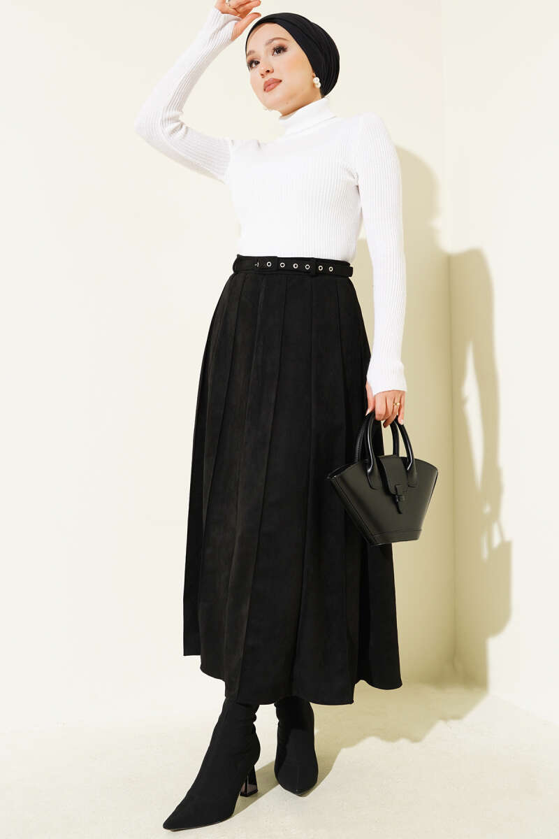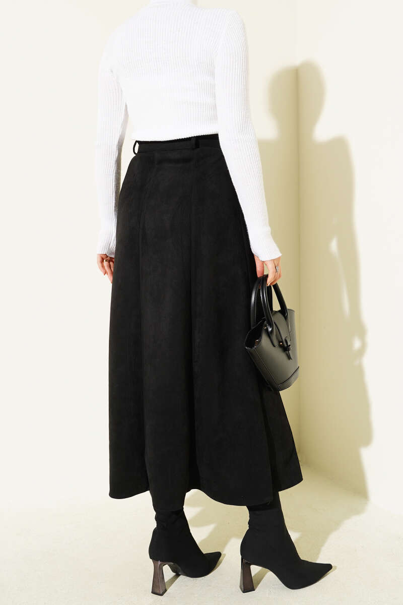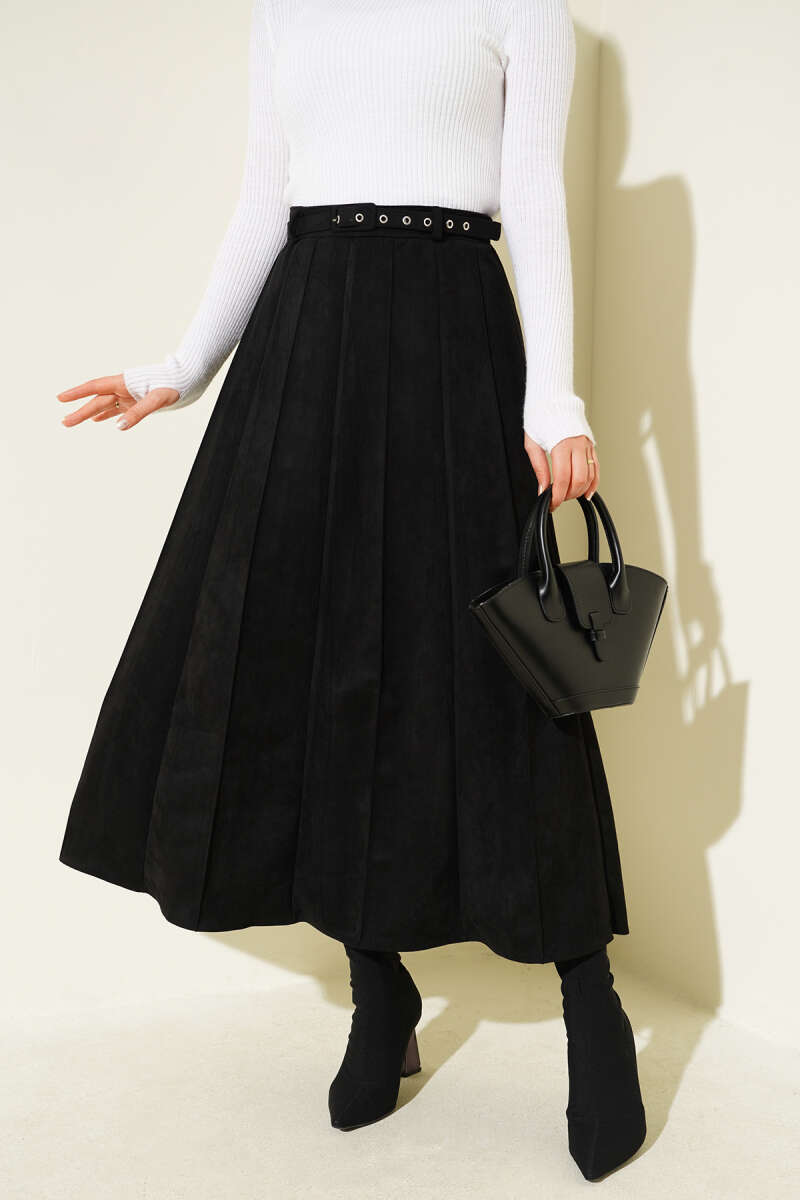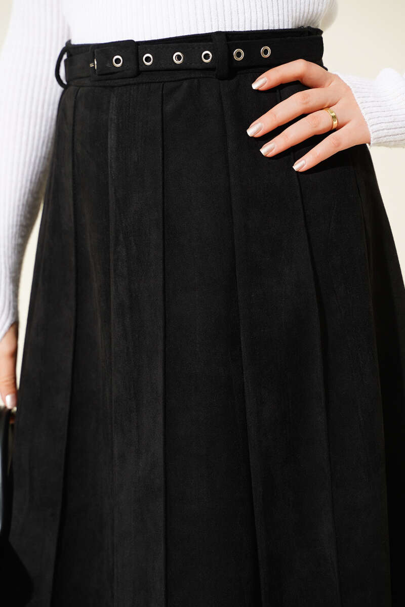 İnce Kemerli Süet Etek Siyah