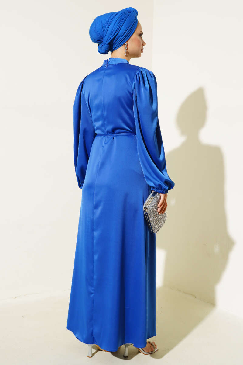 Duble Kol İp Kuşaklı Loyşa Elbise İndigo