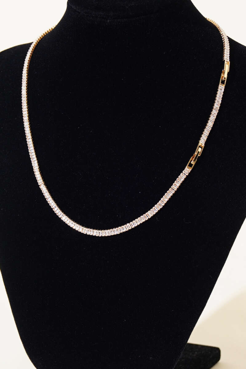 İnce Su Yolu Taşlı Kolye Gold
