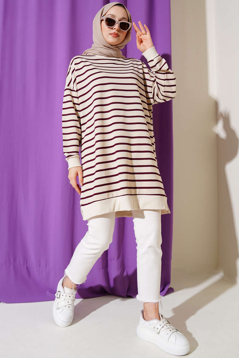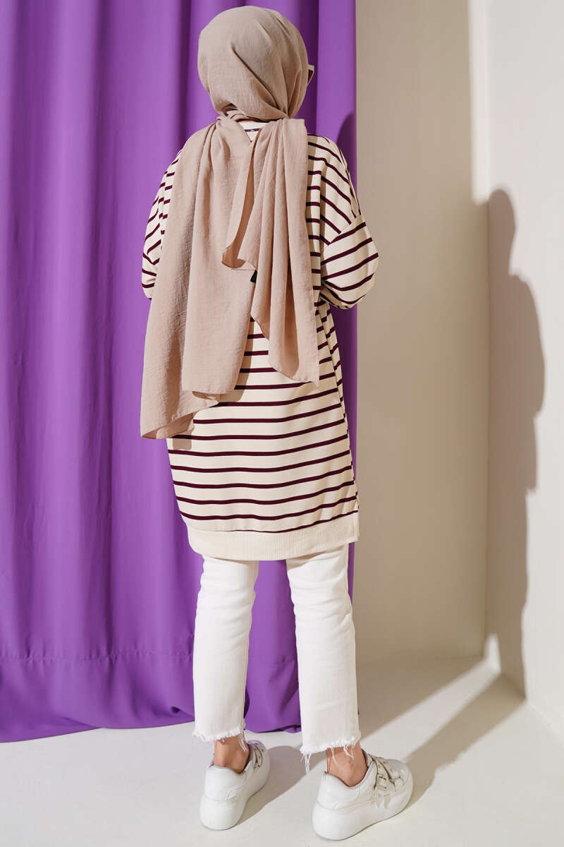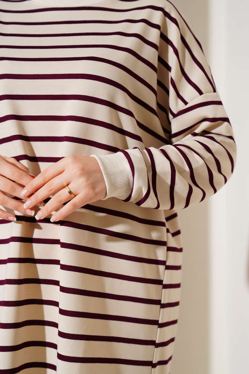 İp Detaylı Beli Lastikli Dar Paça Füme Bordo