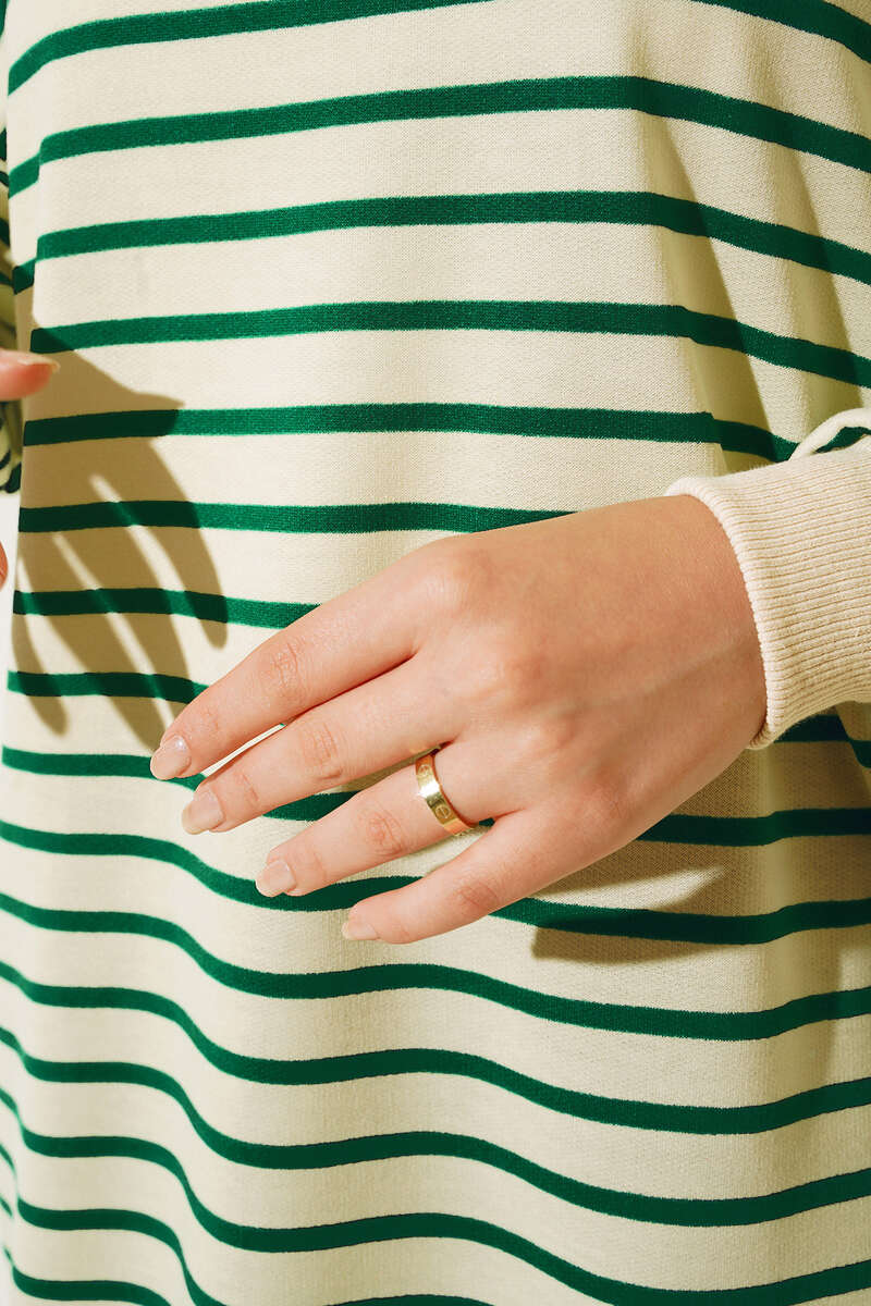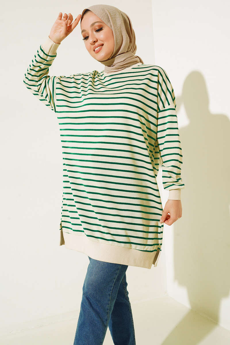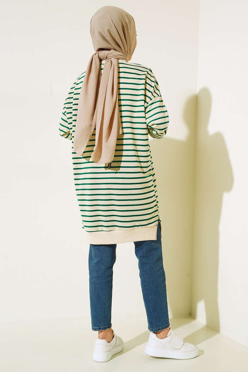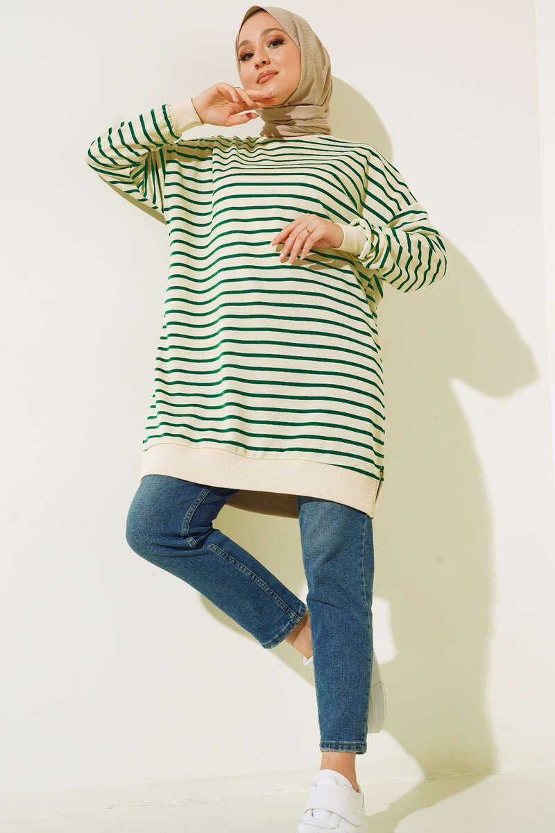 İnce Yatay Çizgili Tunik Yeşil
