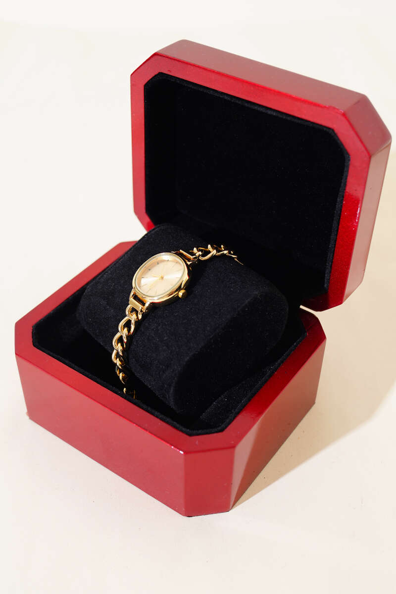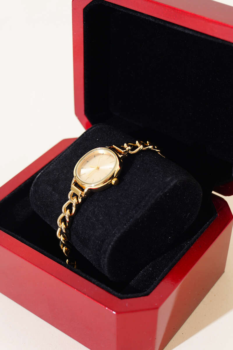 İnce Zincir Kordonlu Kadın Kol Saati Gold