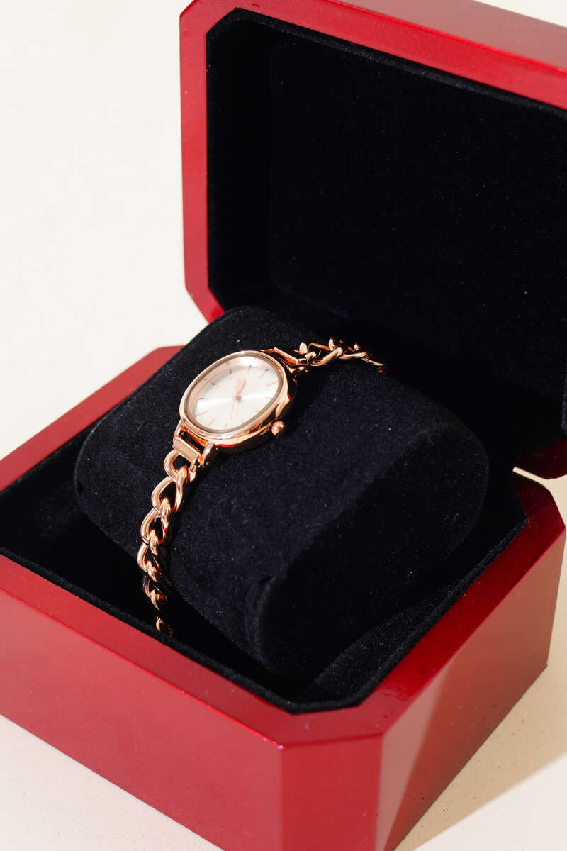 İnce Zincir Kordonlu Kadın Kol Saati Rose