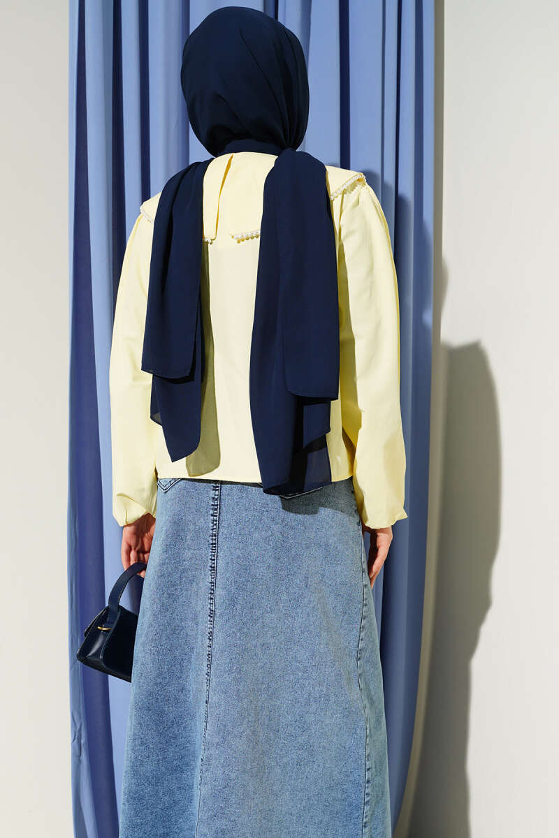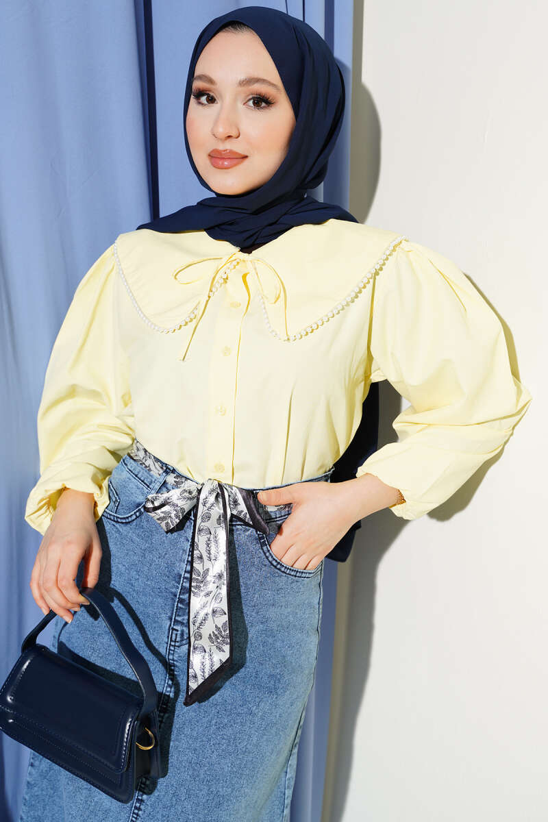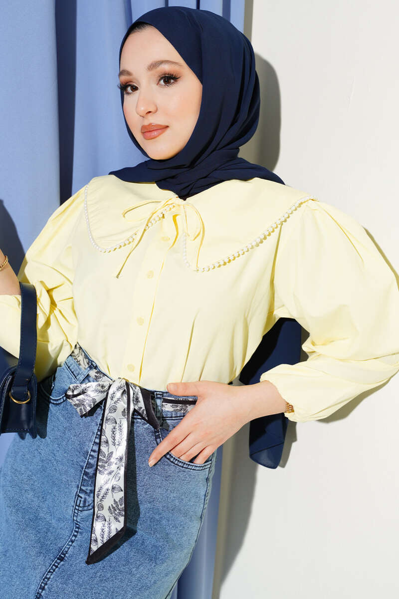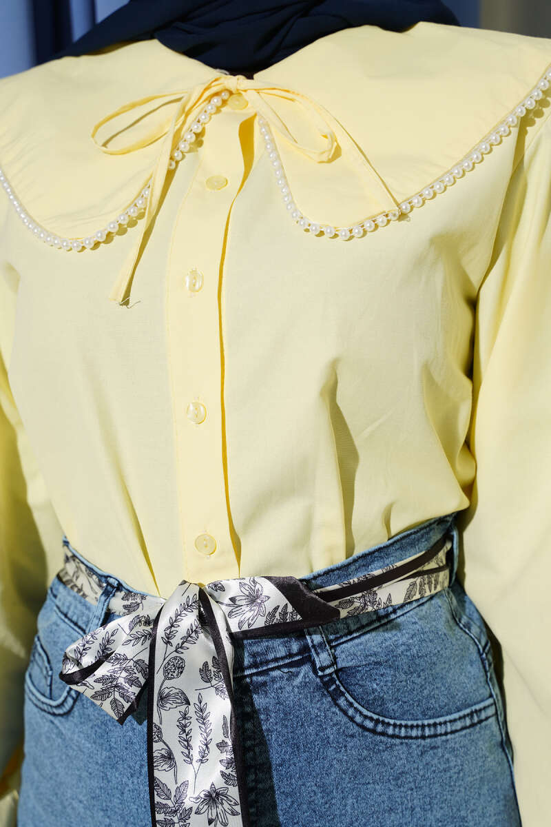 İnci Detaylı Denizci Yaka Kısa Gömlek Sarı