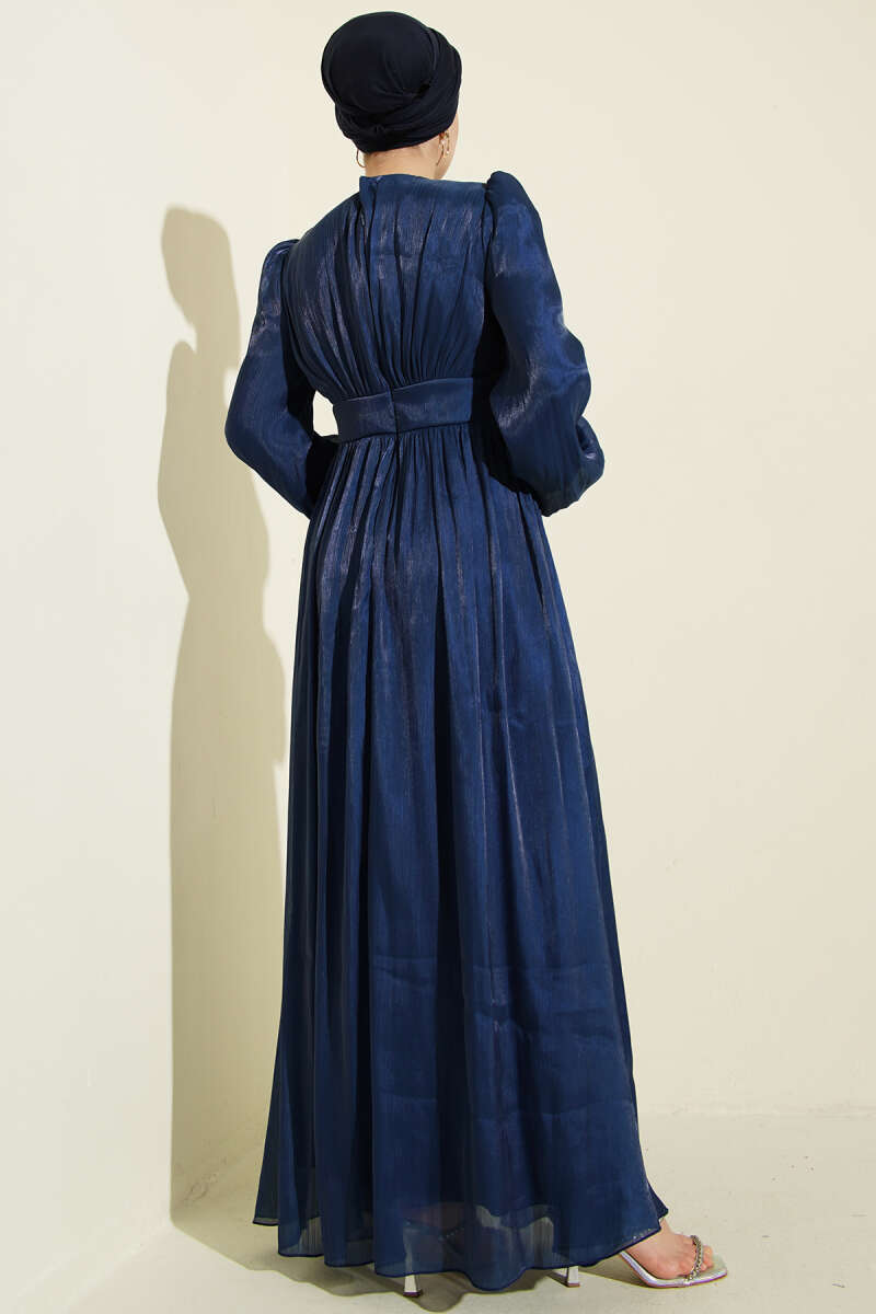 Kemerli Fularlı Tensel Elbise Mavi