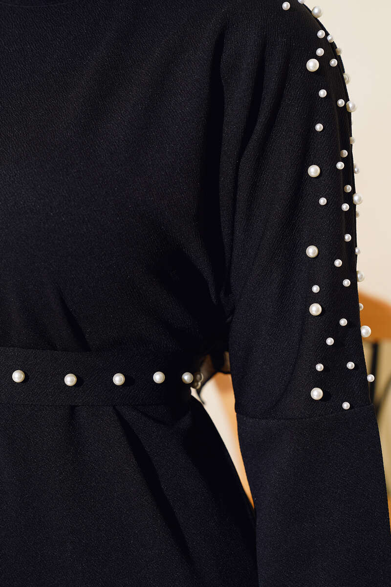 Yeni sezon elbisemiz sizlerle beraber. Elbisemizin omuzu inci süslemelidir. Elbisemiz astarsızdır. Yarasa koldur. Kendi kumaşından kuşağı olup, kuşağı inci süslemelidir. Sade ve şık duruşuyla favoriniz olacak elbisemizin renk seçenekleri mevcuttur.