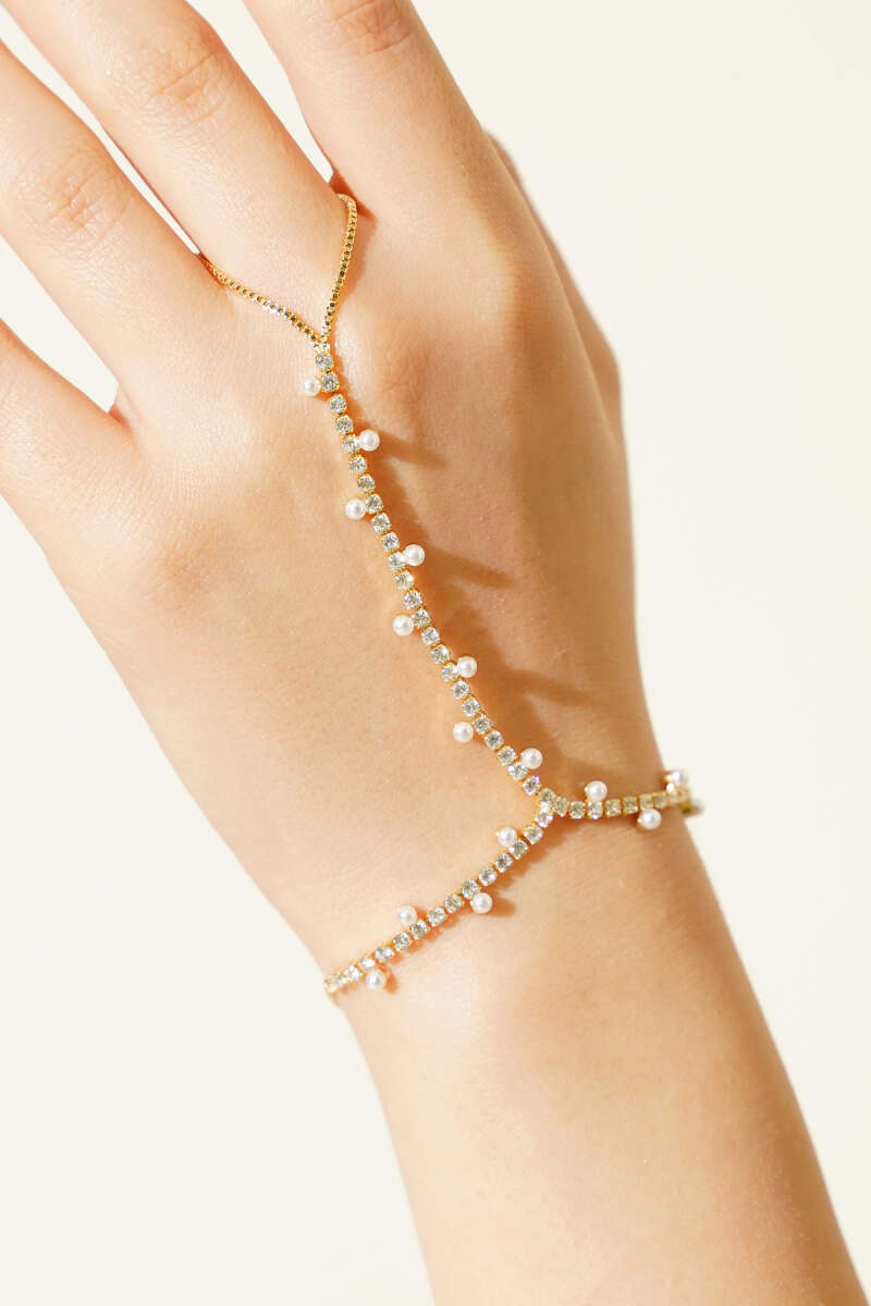 İnci Detaylı Su Yolu Zirkon Taşlı Şahmeran Gold