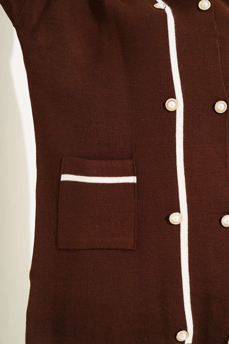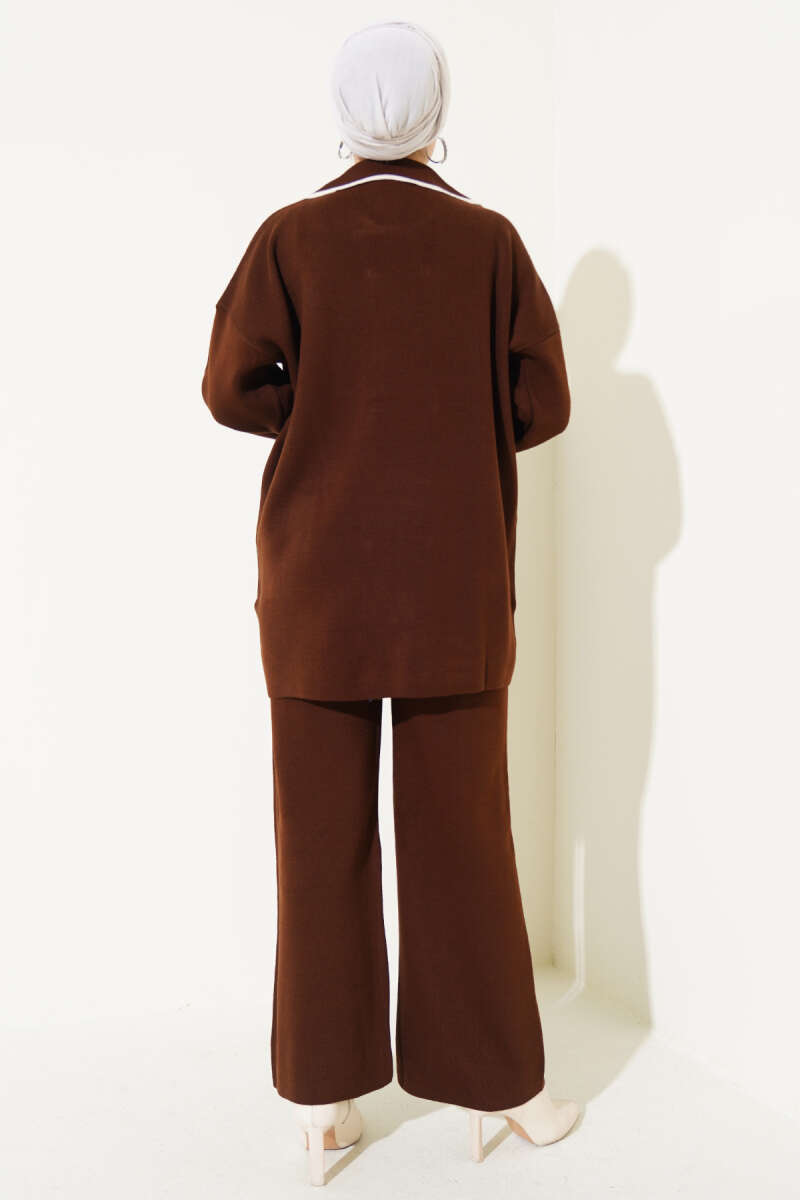 Balon Kol Balıkçı Yaka Triko İkili Takım Kahve