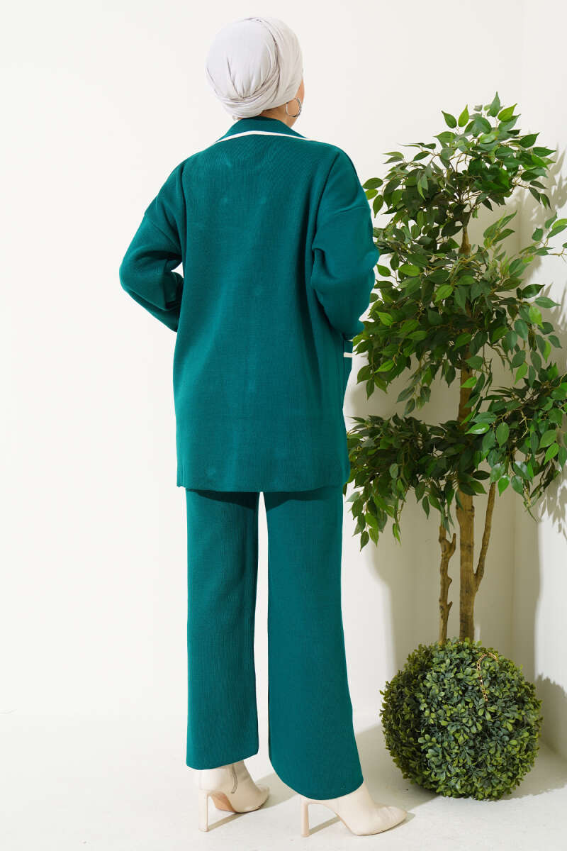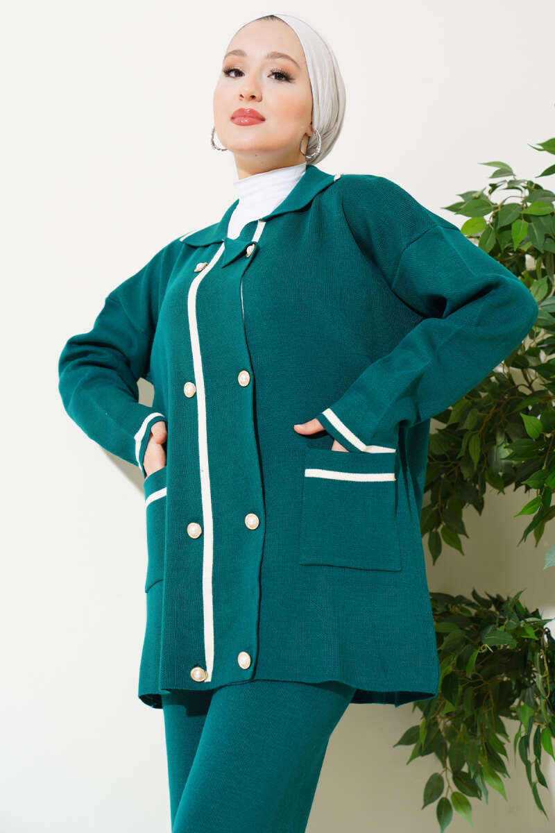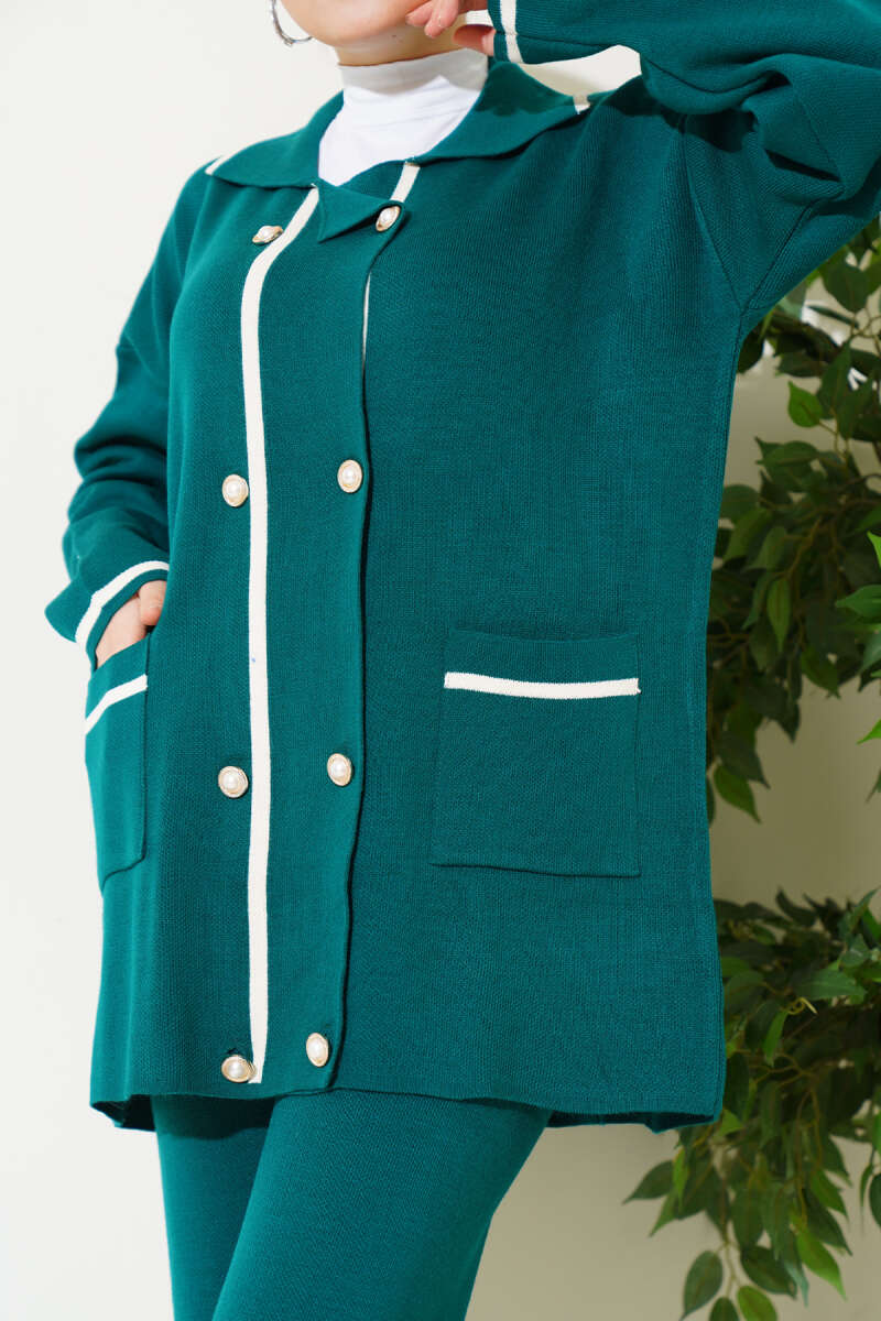 Taşlı Baklava Desen Triko İkili Takım Zümrüt