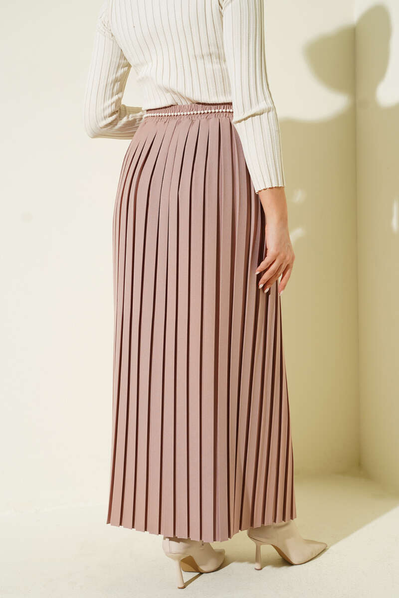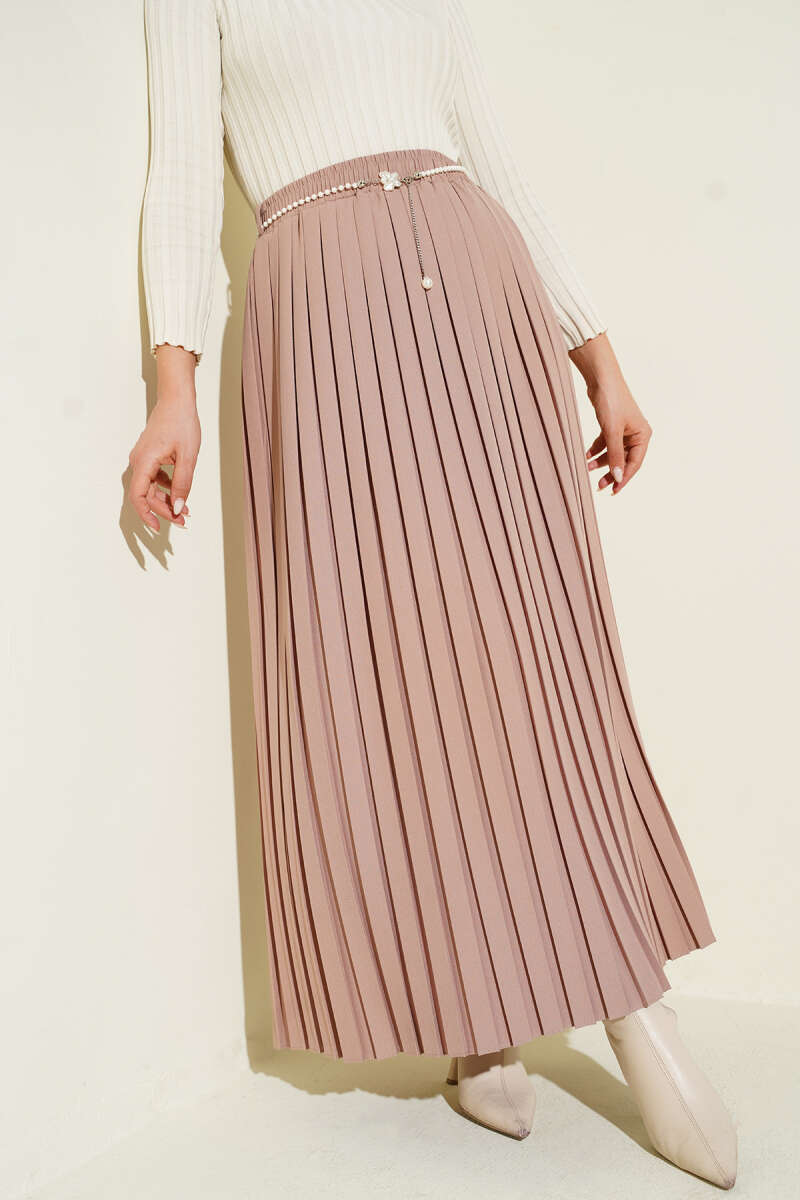 Kemerli Pile Detaylı Cepli Etek Füme