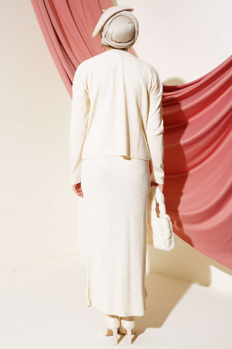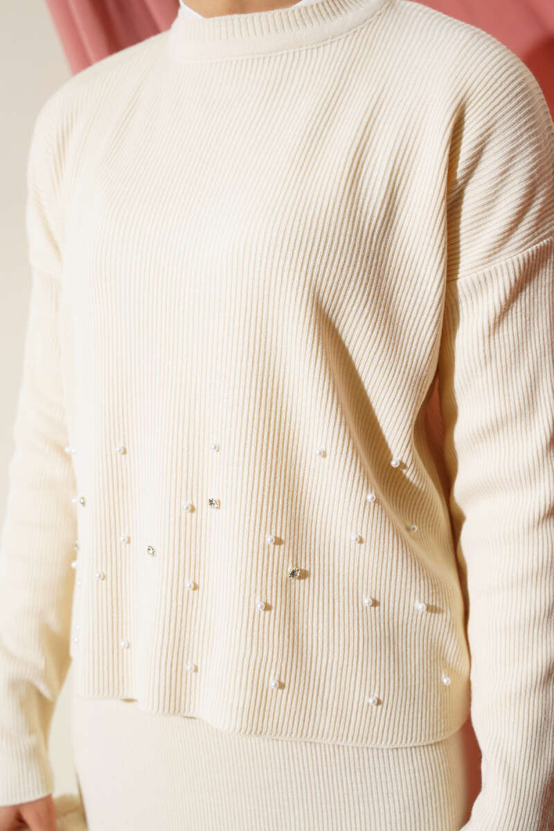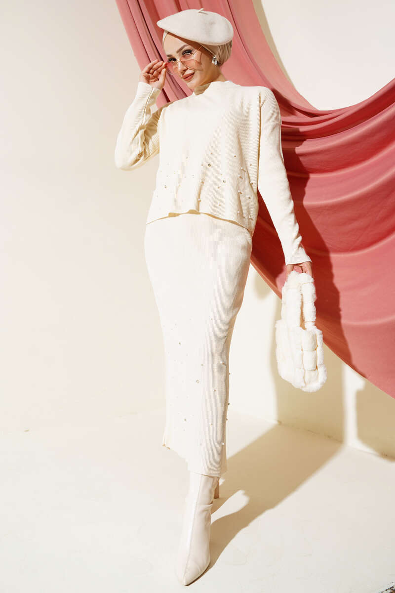 Kabartma Şeritli Taşlı Triko İkili Takım Nefti