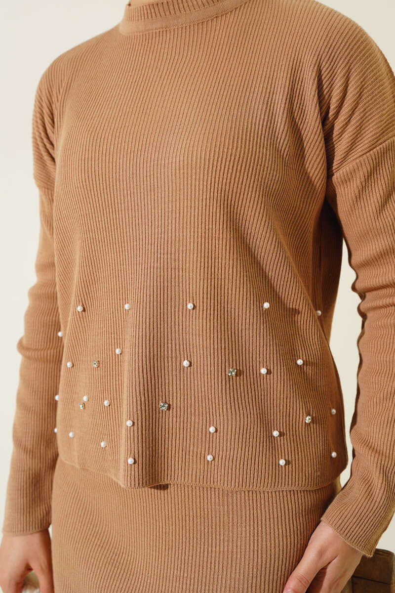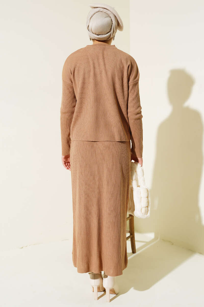 Balıkçı Yaka Fitilli Triko İkili Takım Kahve