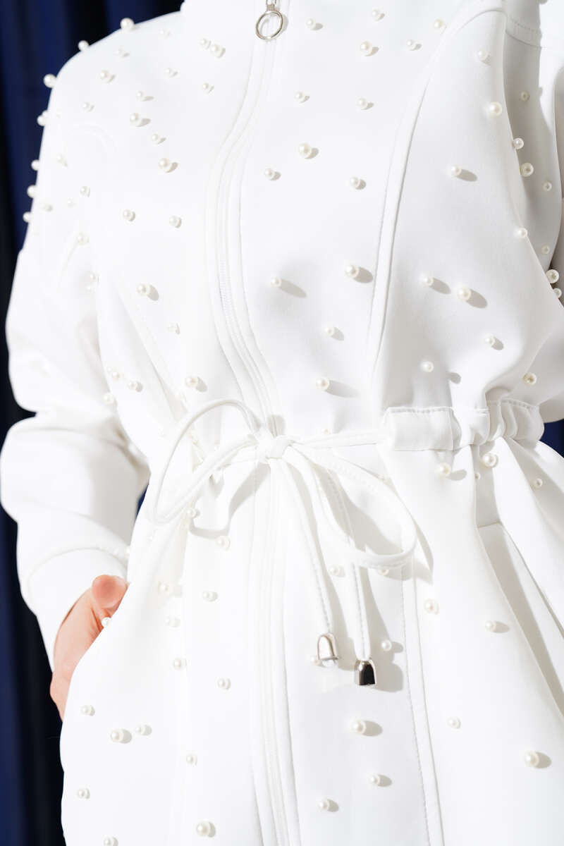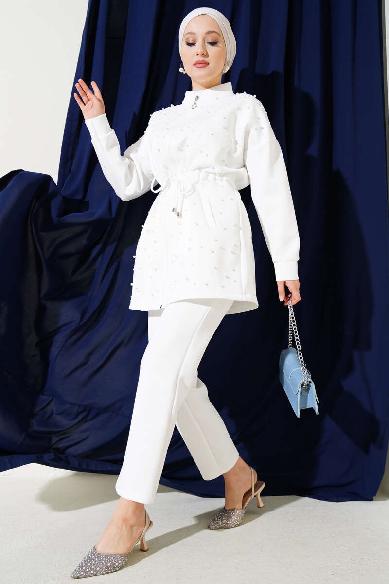 Çımalı Dar Paça Scuba Pantolon Beyaz