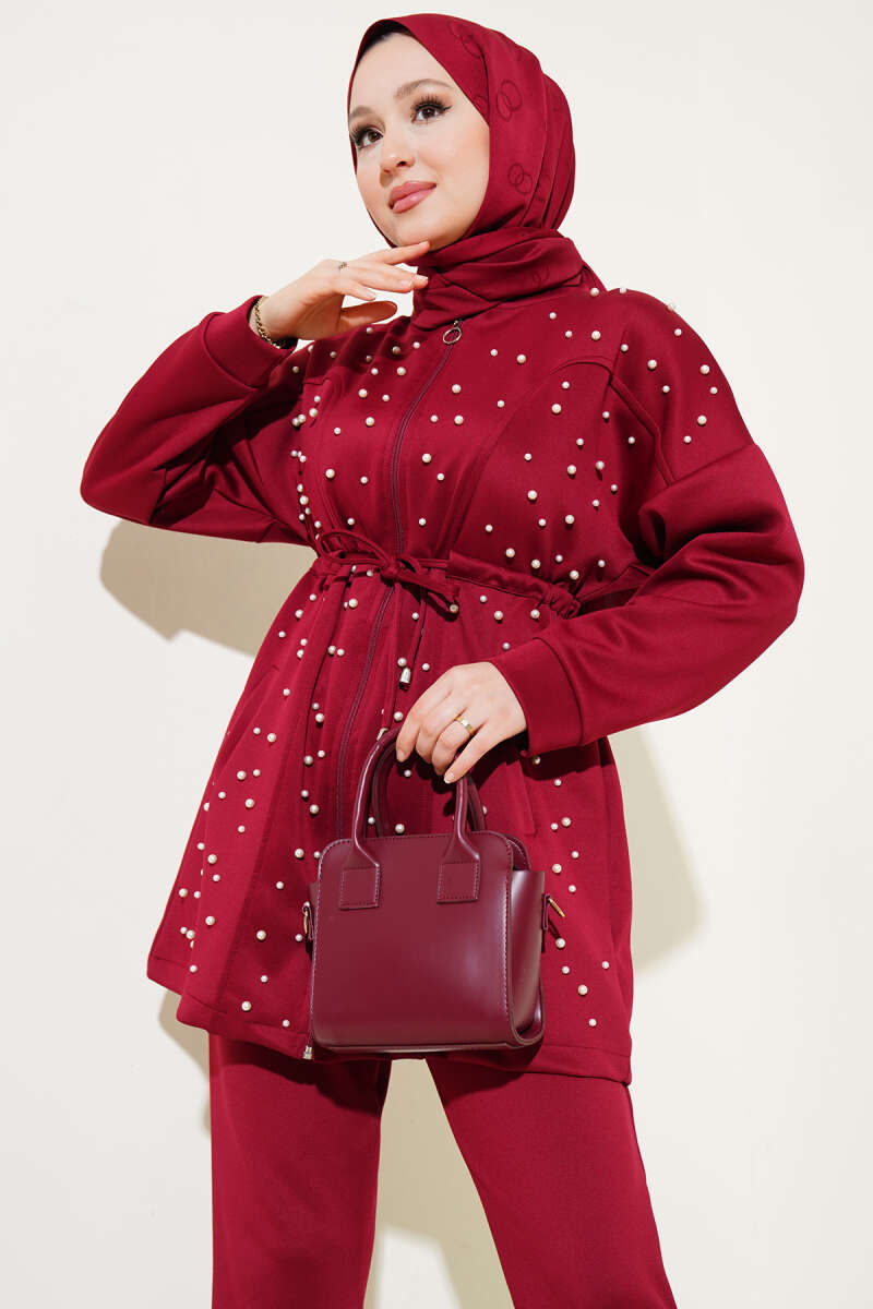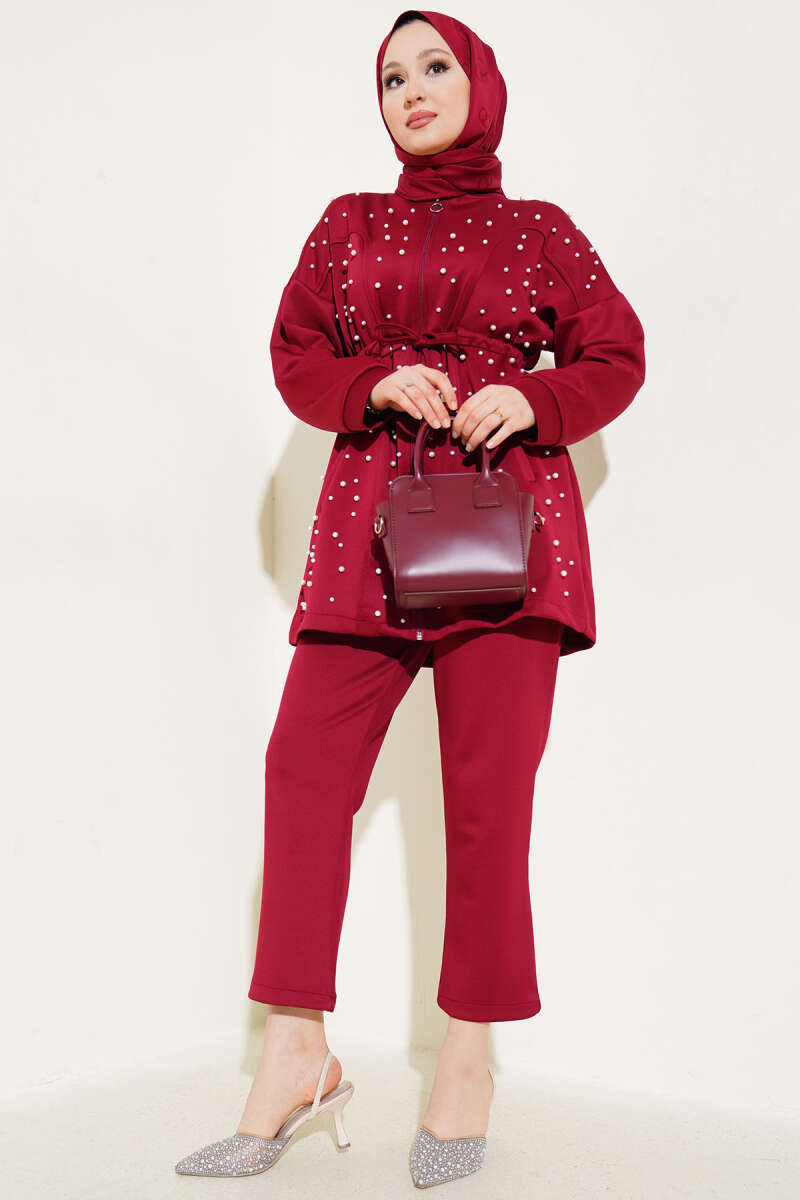Kanguru Cepli Fermuarlı İkili Takım Bordo