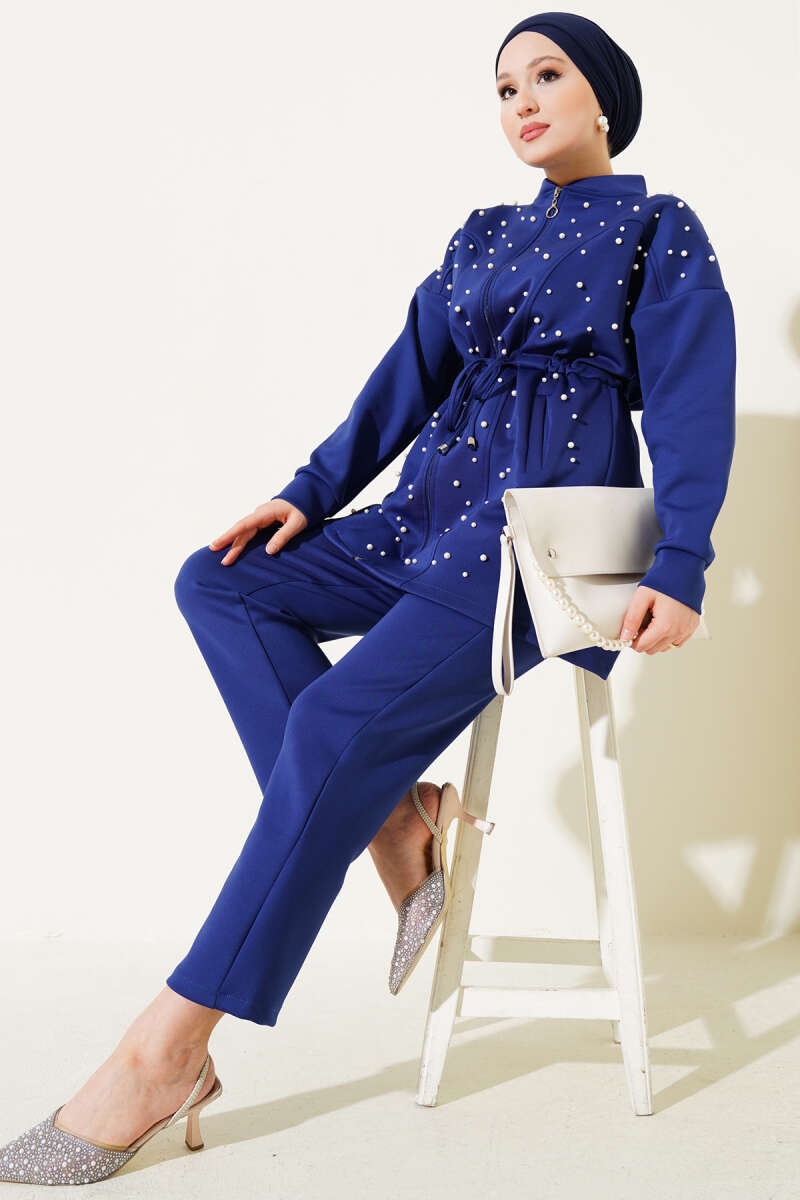 Kapüşonlu Taş Detay Cepli Loyşa İkili Takım Lacivert