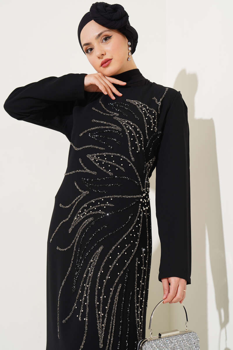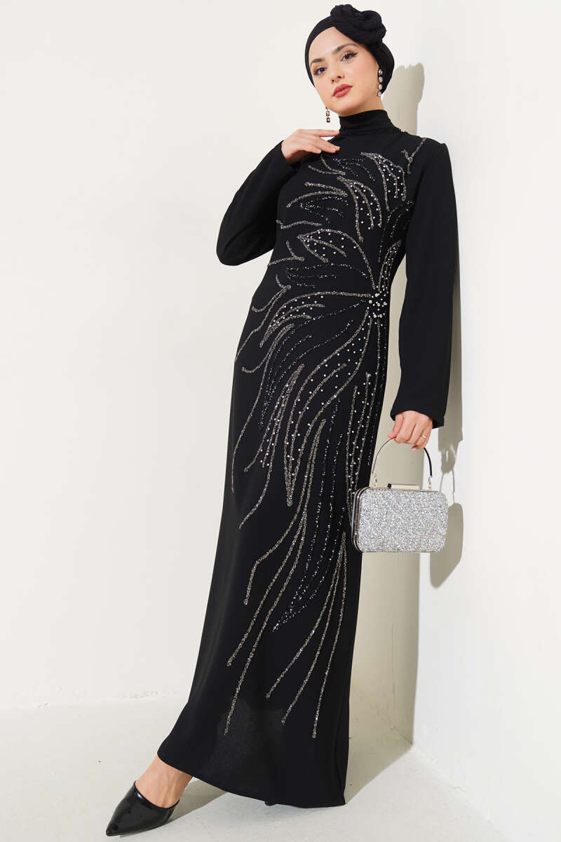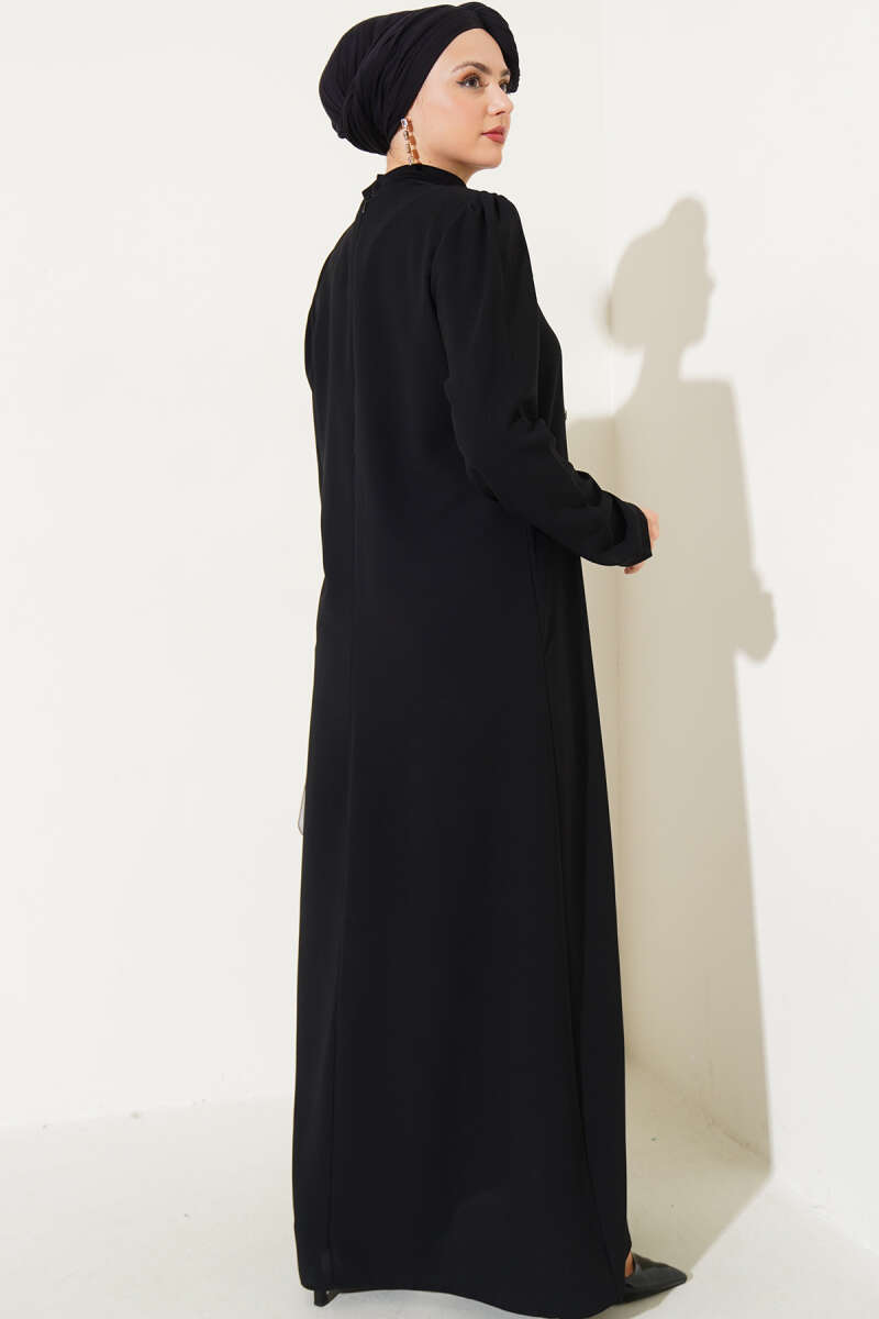 Düğmeli Tensel İnce Kemerli Elbise Siyah