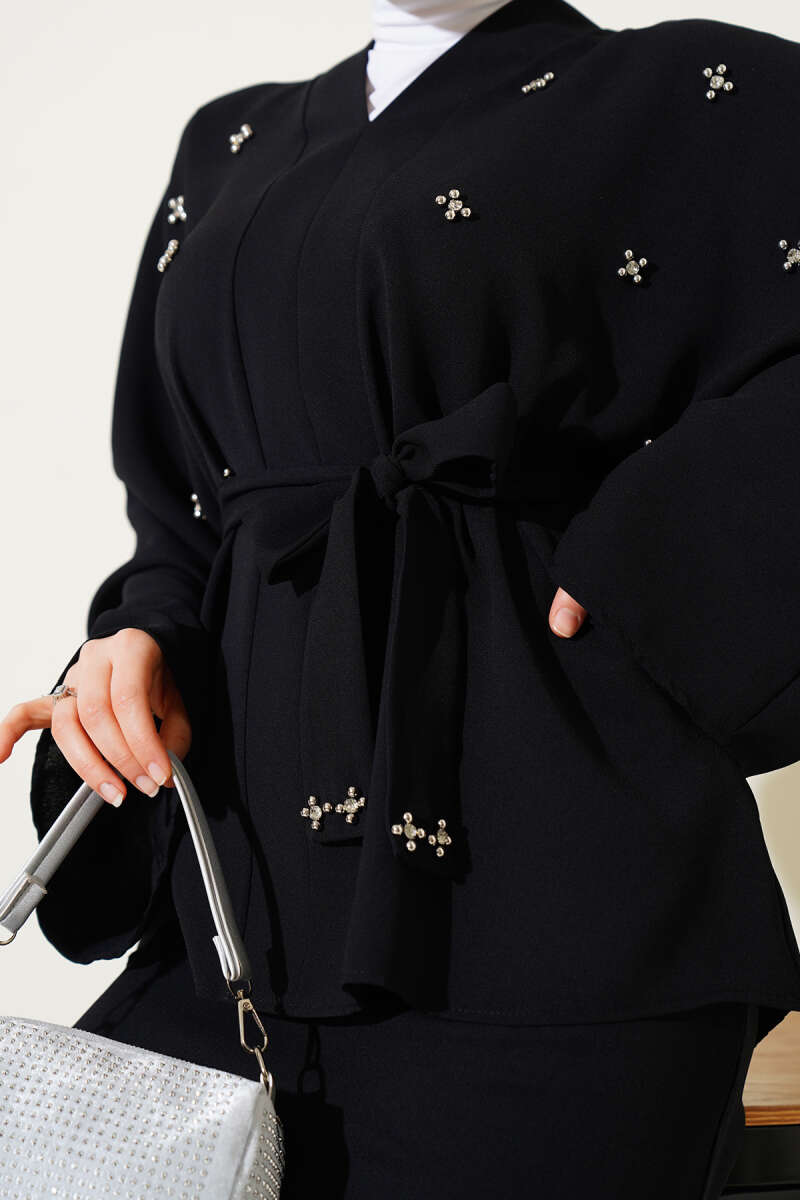 İnci Taşlı Süslemeli Etekli İkili Takım Siyah