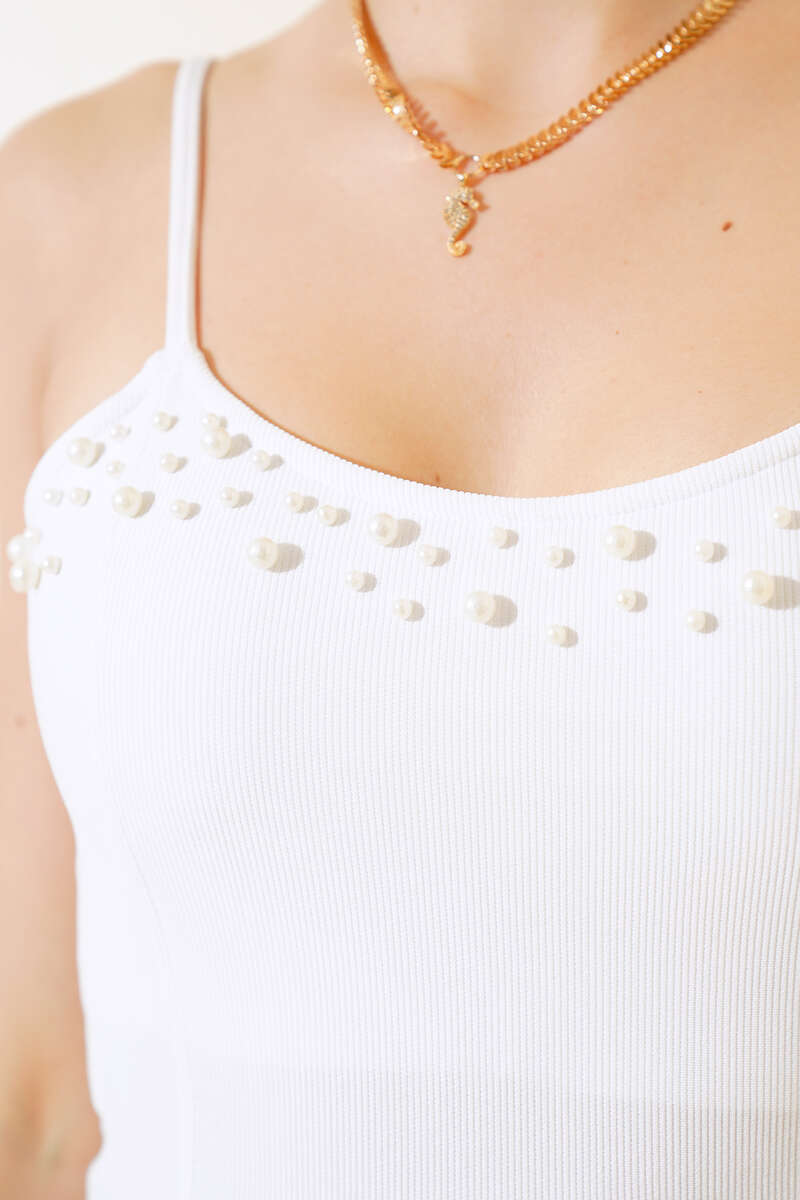 Yeni sezonun favori parçası olan bluz modelimizi çok seveceksiniz. İnce askılı bluz modelimizin önü incili olup şıklık kazanmıştır. Kaşkorse bluz modelimiz size çok yakışacak.