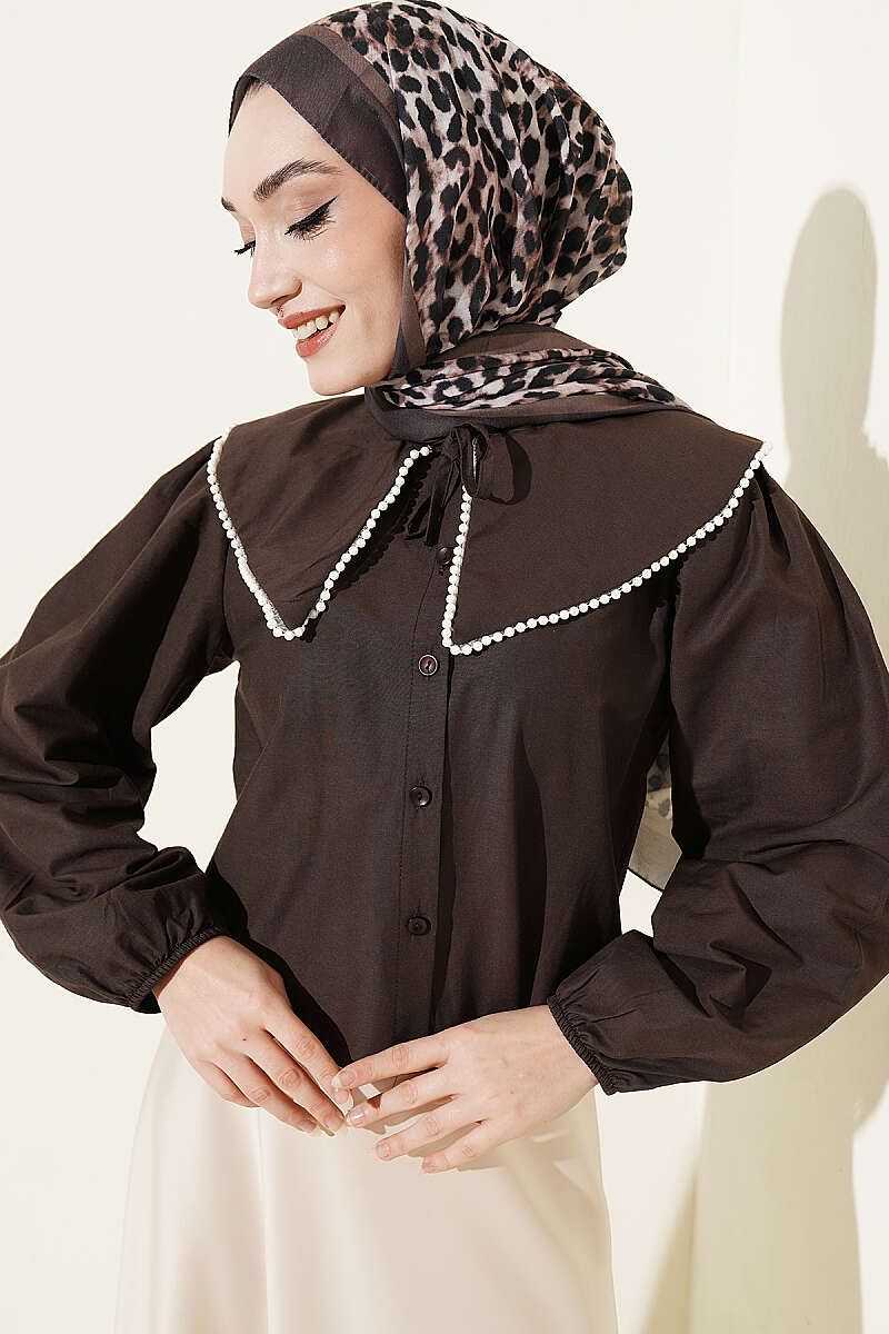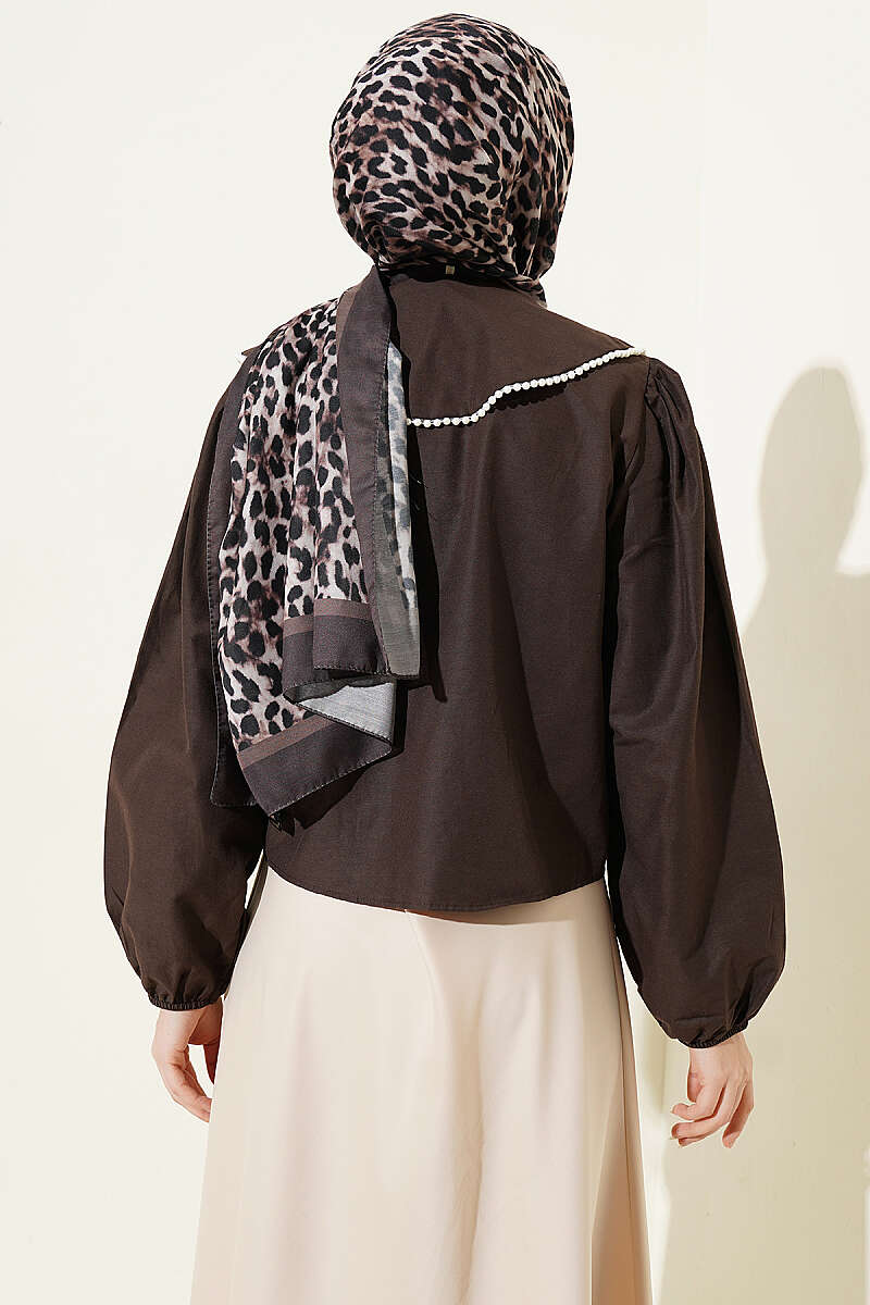 Kat Kat Detaylı Büzgülü Gömlek Kahve