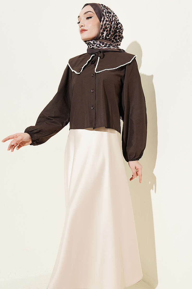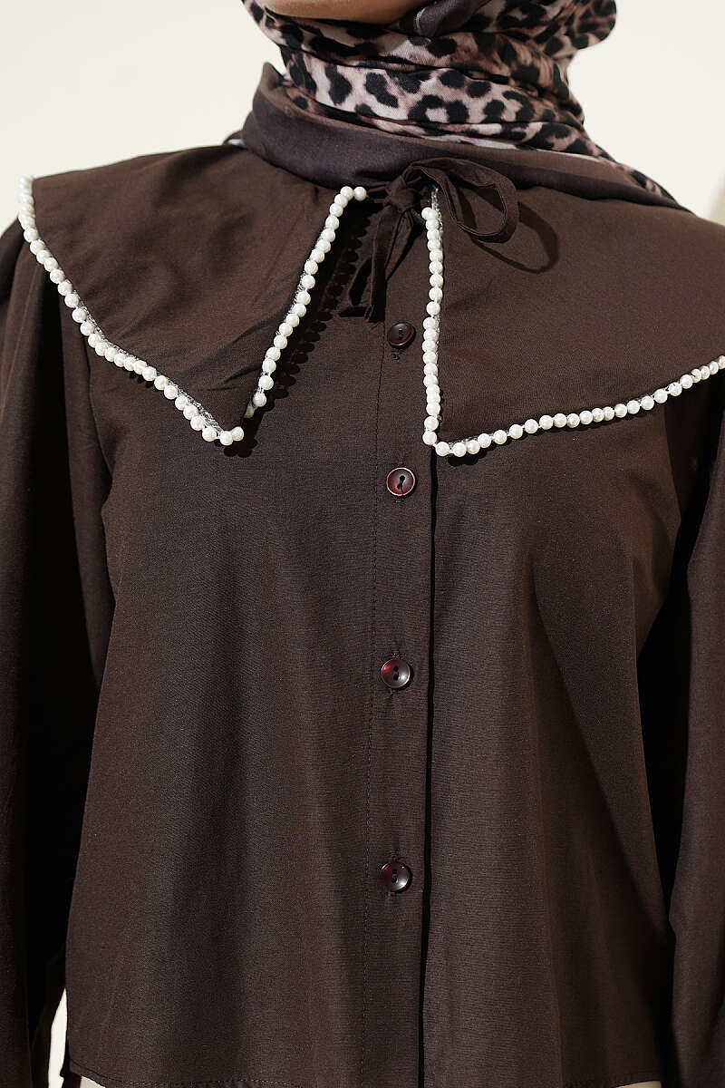 İncili Denizci Yaka Kısa Gömlek Acı Kahve
