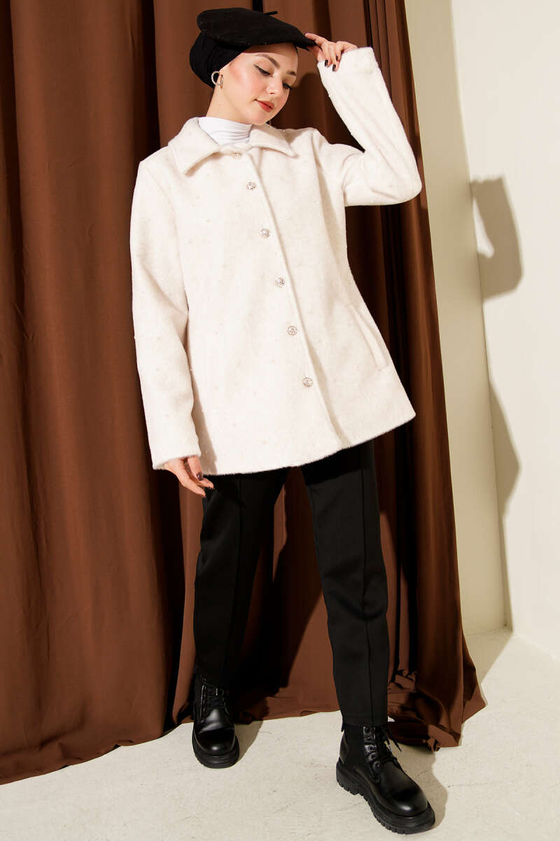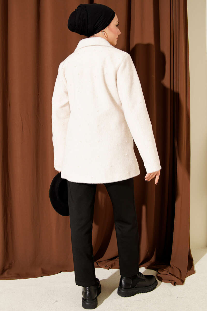 İncili Düğmeli Tay Tüyü Kaban Füme