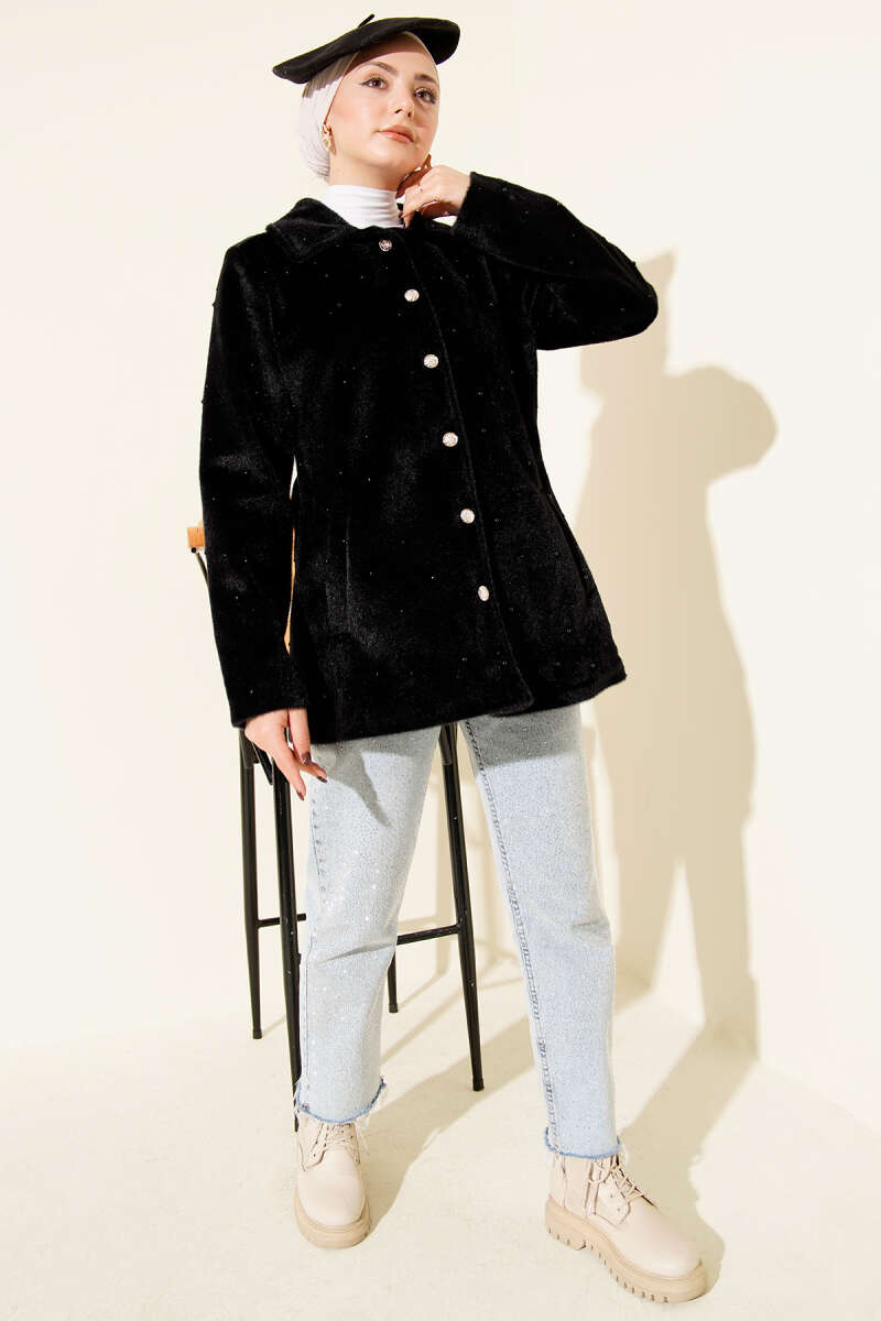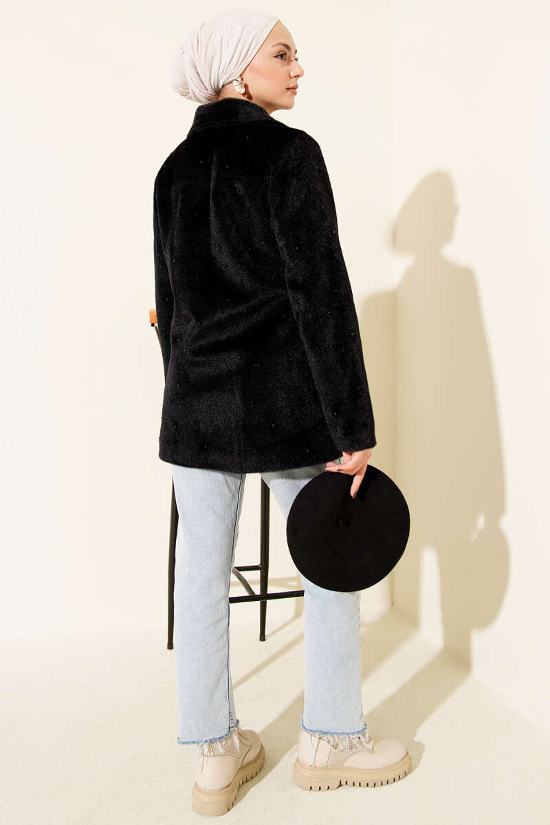 Omuz Apoletli Atkılı Kaşe Kaban Siyah