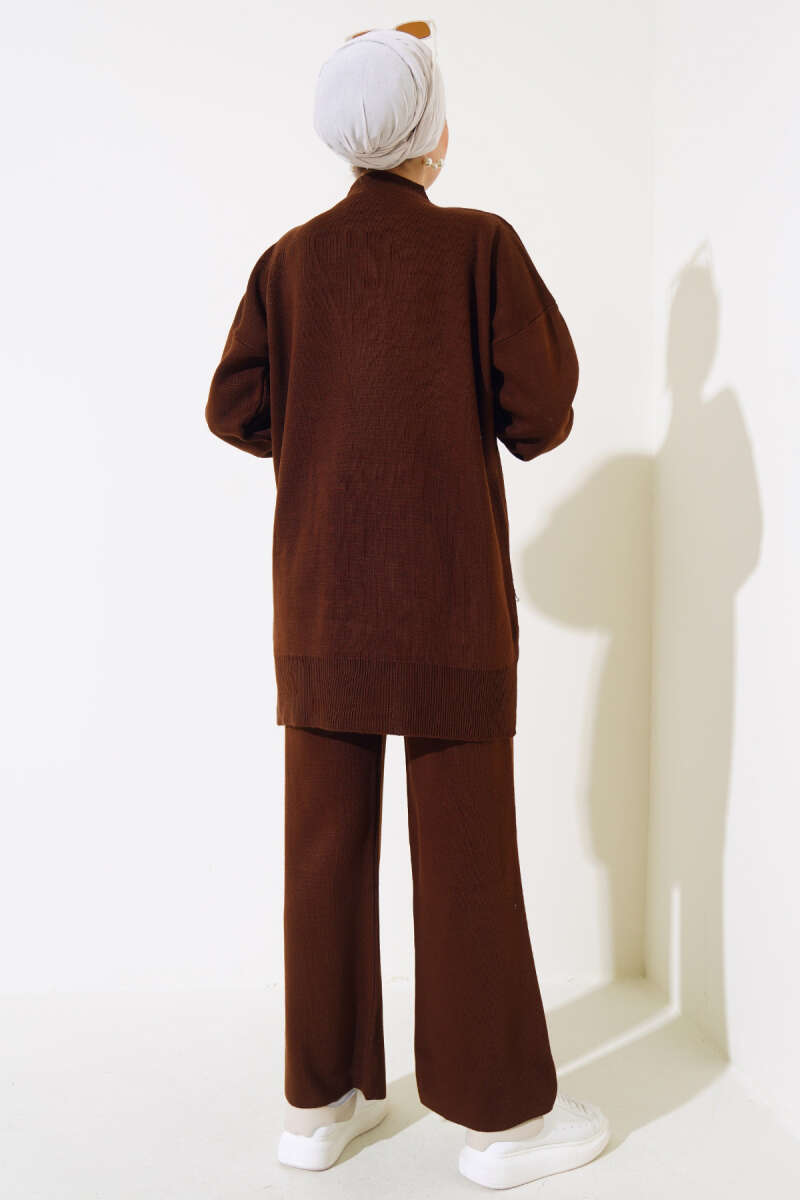 Önü Püskül Detaylı Triko İkili Takım Kahve