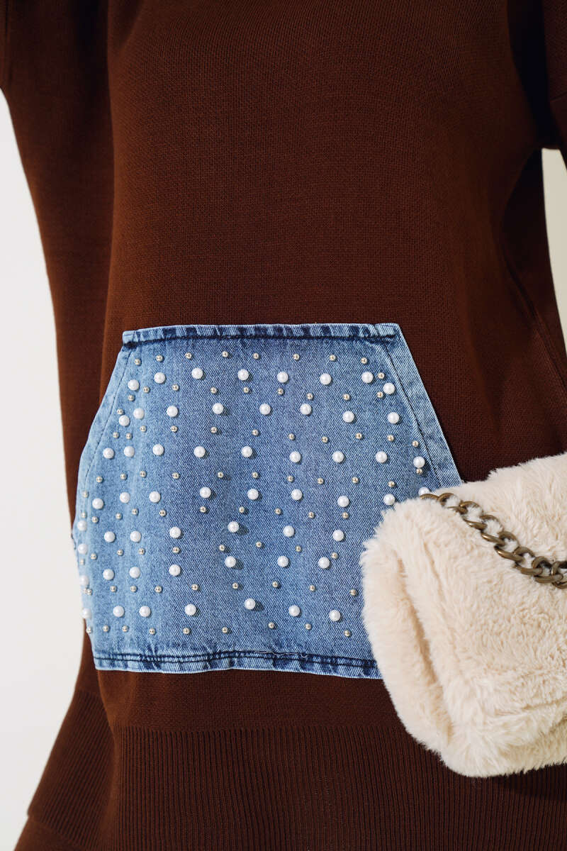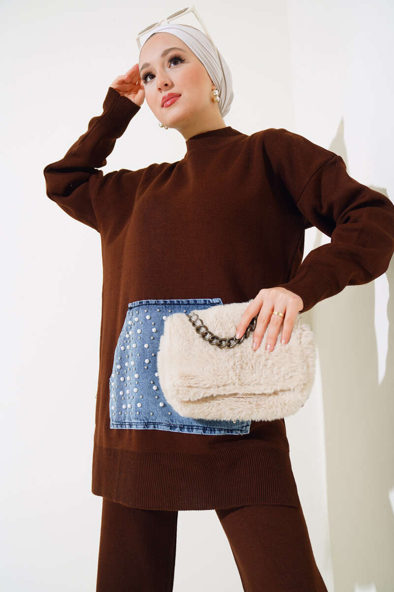 Balon Kol Balıkçı Yaka Triko İkili Takım Kahve
