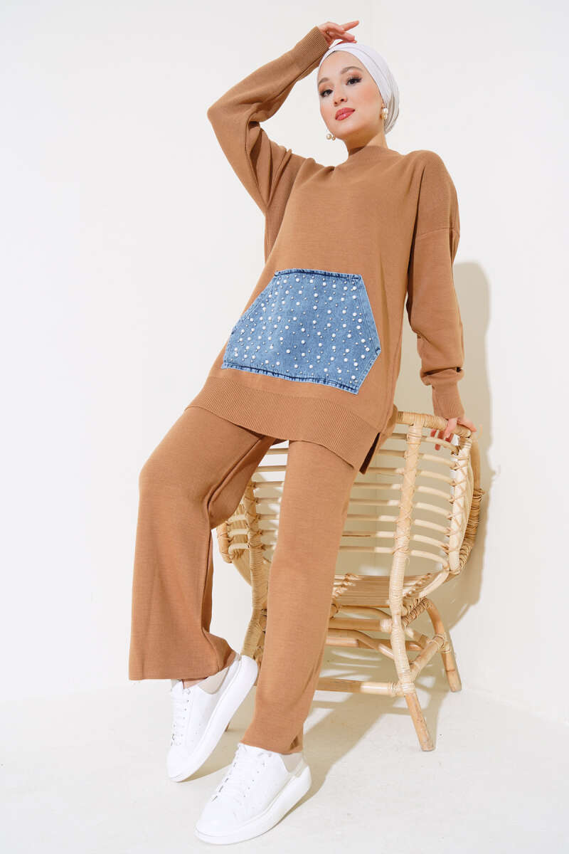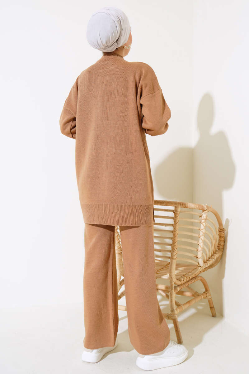 Balıkçı Yaka Fitilli Triko İkili Takım Kahve