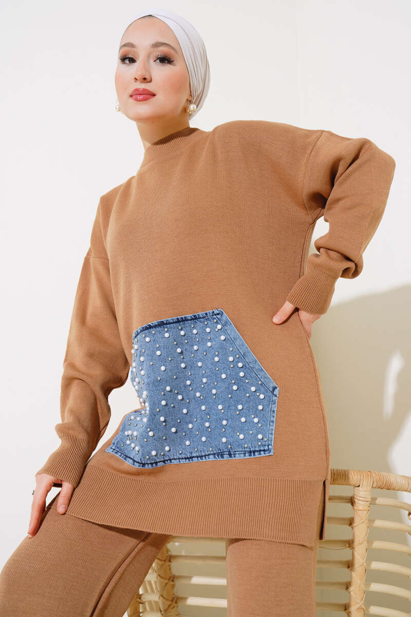 Çoban Dikişli Triko Tunik İkili Takım Nefti