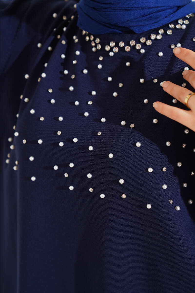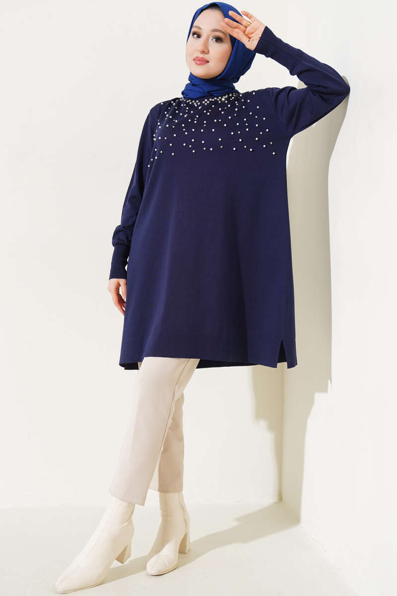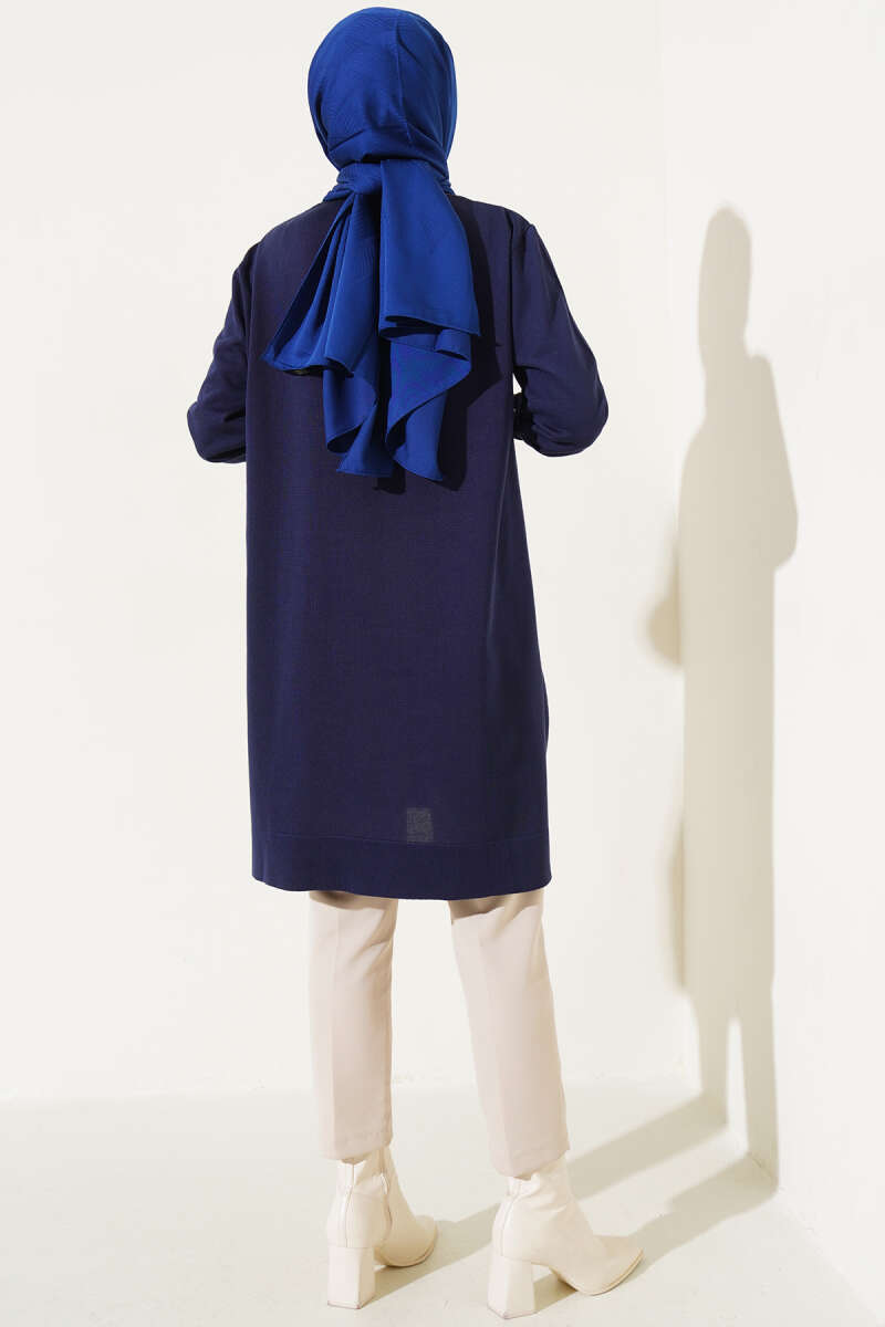 Gömlek Yaka Fularlı Triko Tunik Lacivert