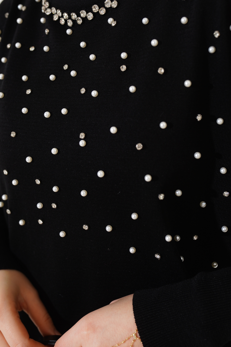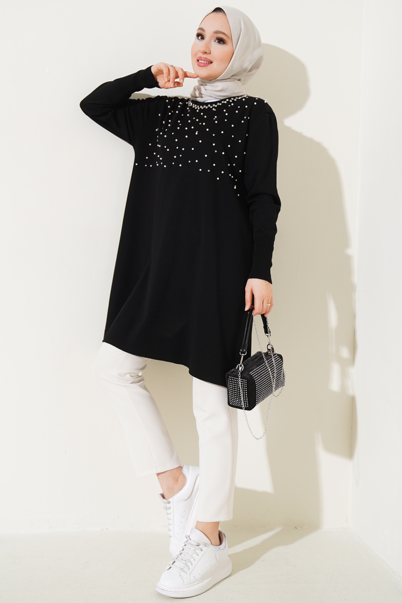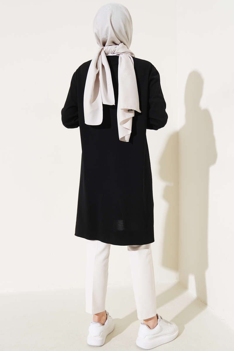 Gömlek Yaka Fularlı Triko Tunik Siyah