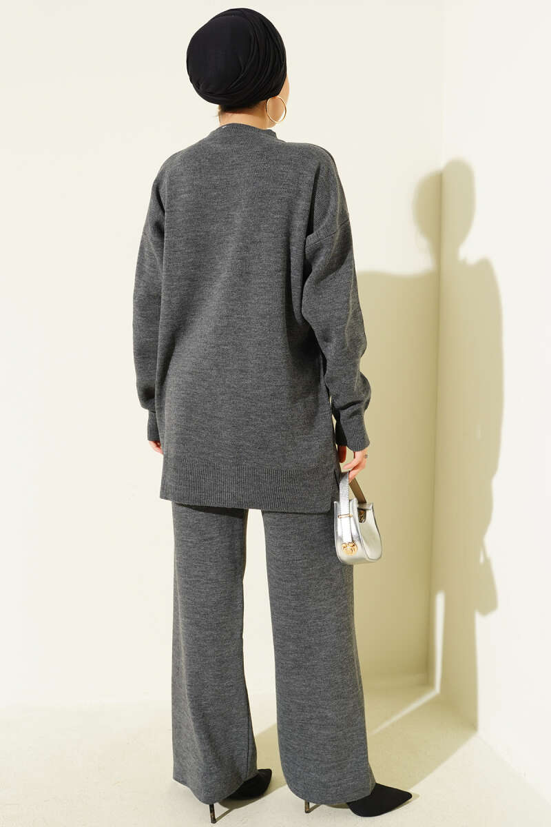 Loyşa Cepli Uzun Tunik İkili Takım Füme