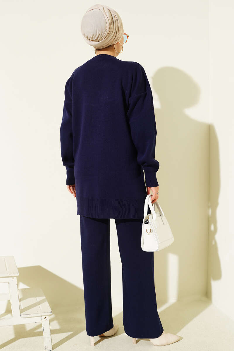 Fitilli Gömlek Yaka Pijama Takımı Lacivert