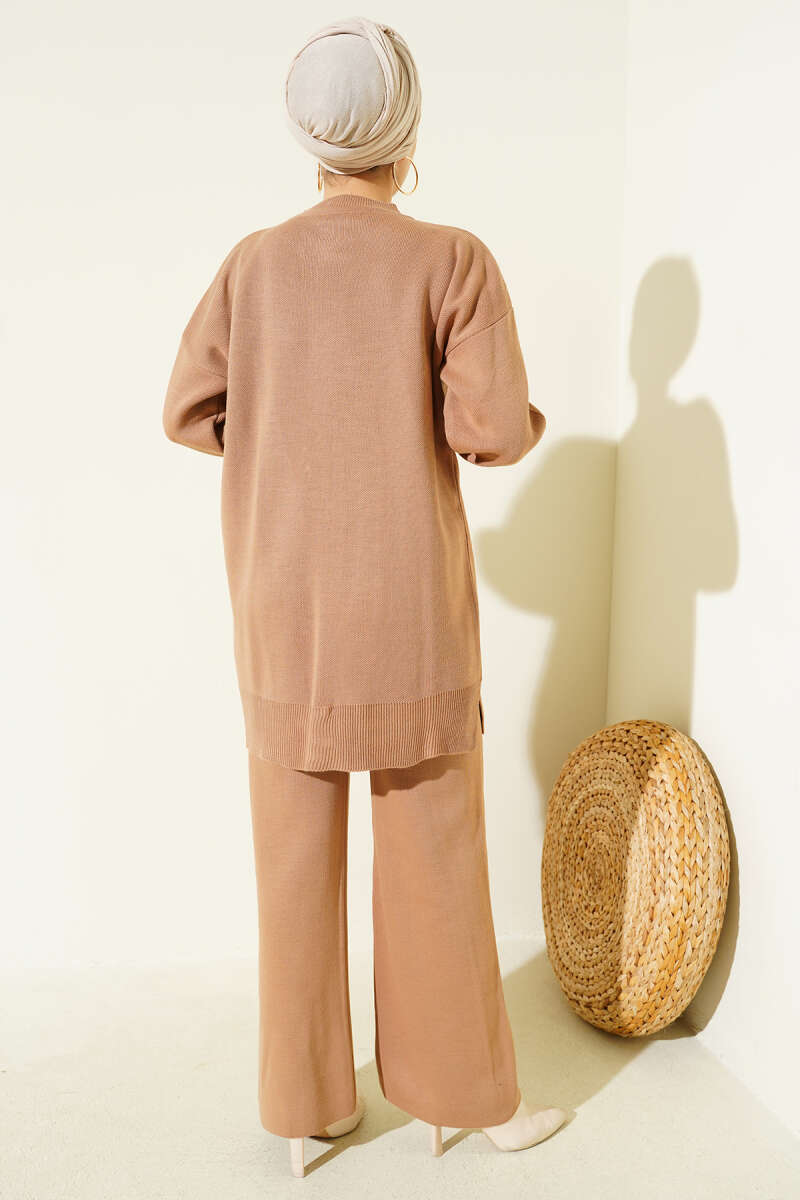 Yanları Metal Düğmeli Kapşonlu İkili Takım Kahve