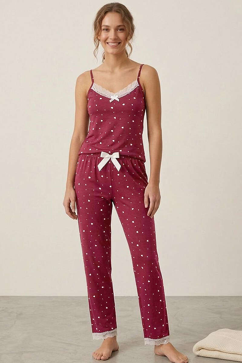 İp Askılı Kalp Baskılı Şort Pijama Takım Gül Kurusu