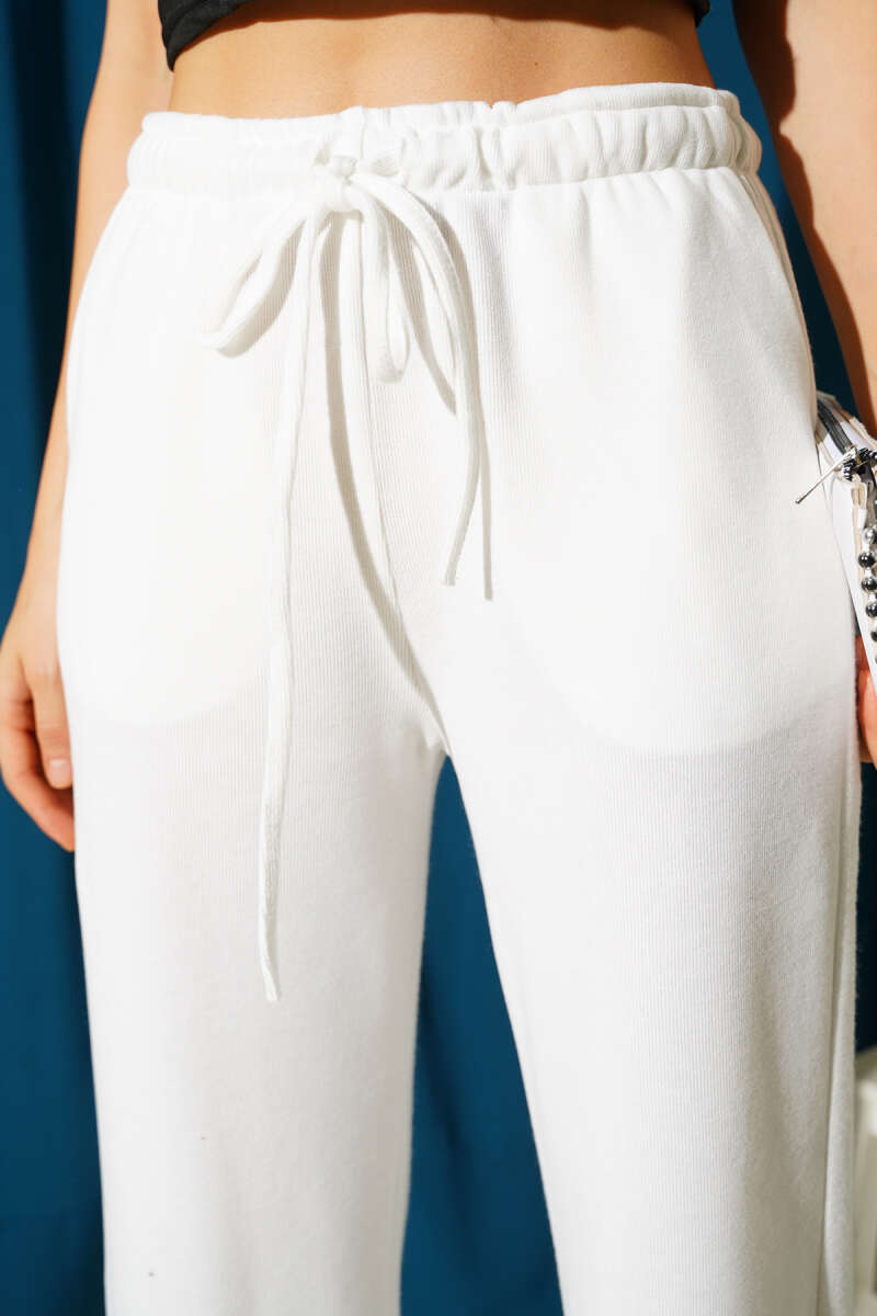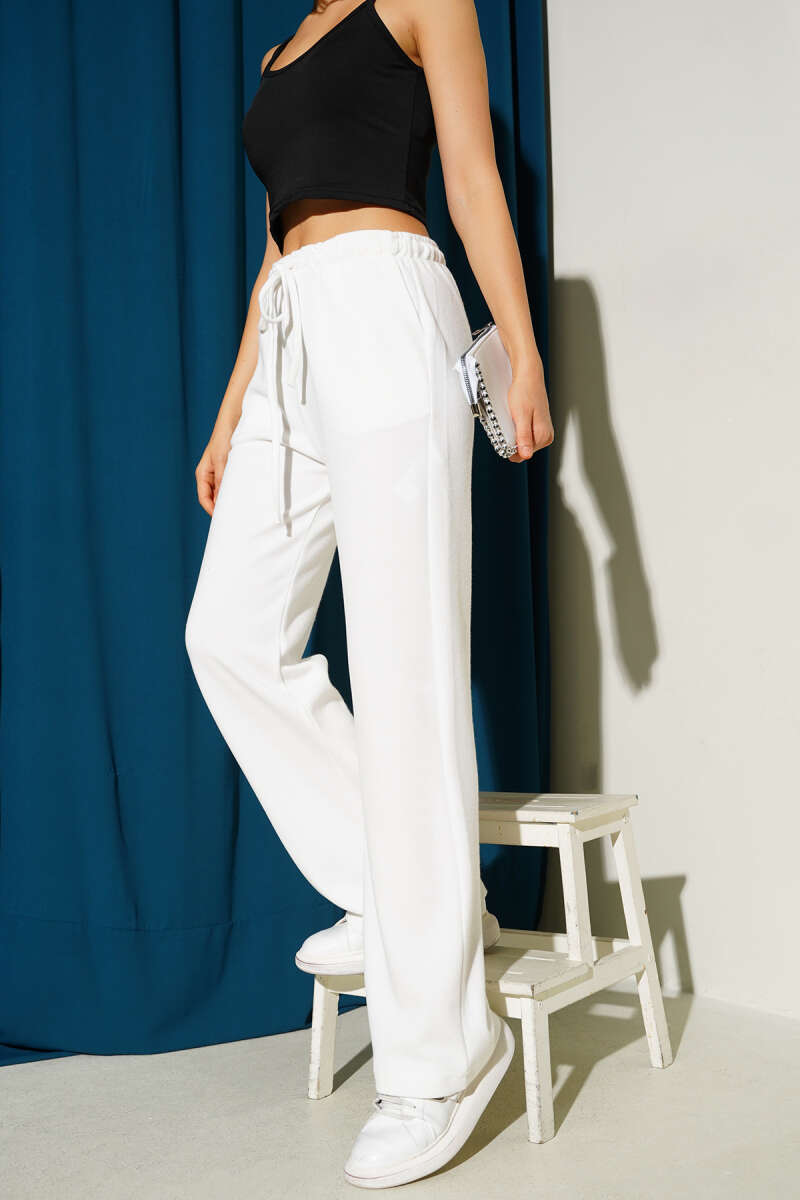 İp Bağcıklı Bol Paça Pantolon Beyaz