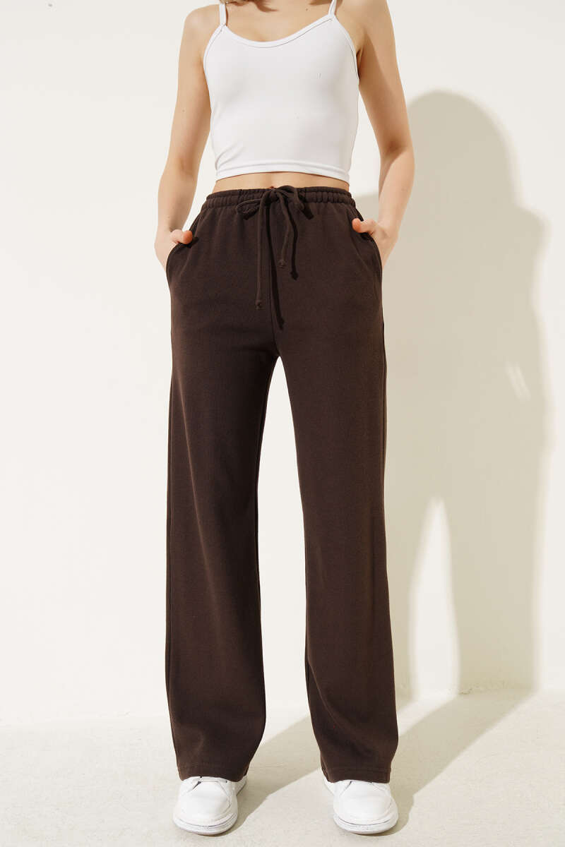 İp Bağcıklı Bol Paça Pantolon Kahve
