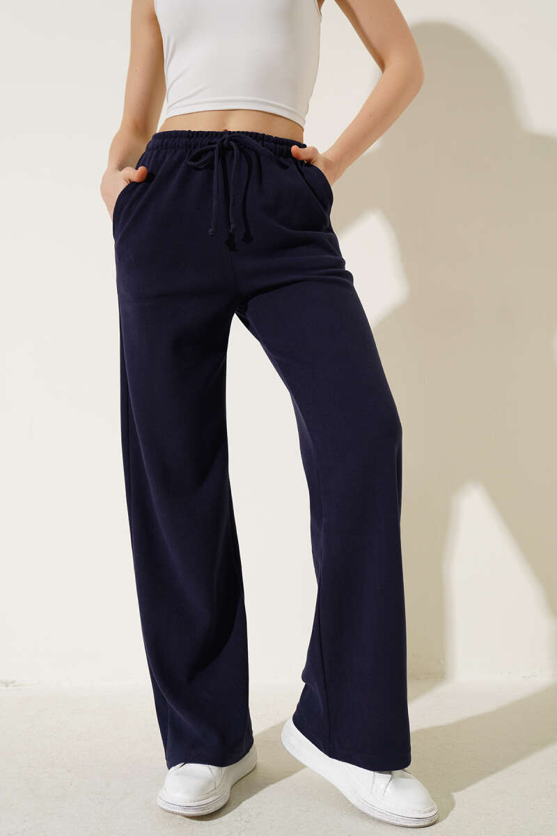 İp Bağcıklı Bol Paça Pantolon Lacivert
