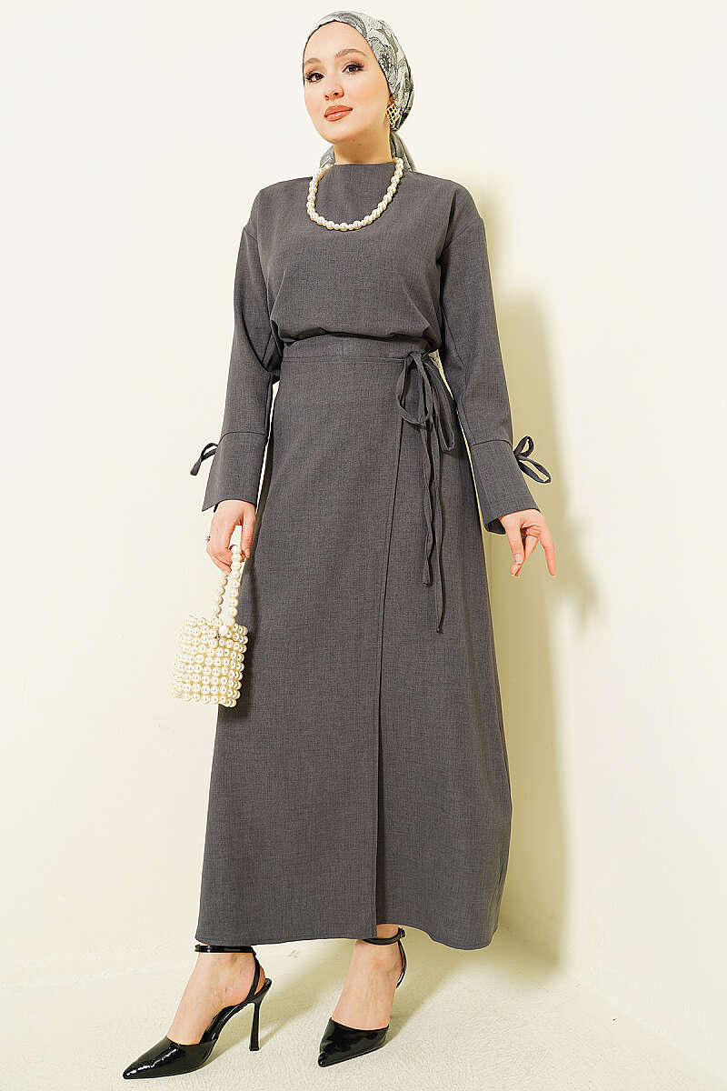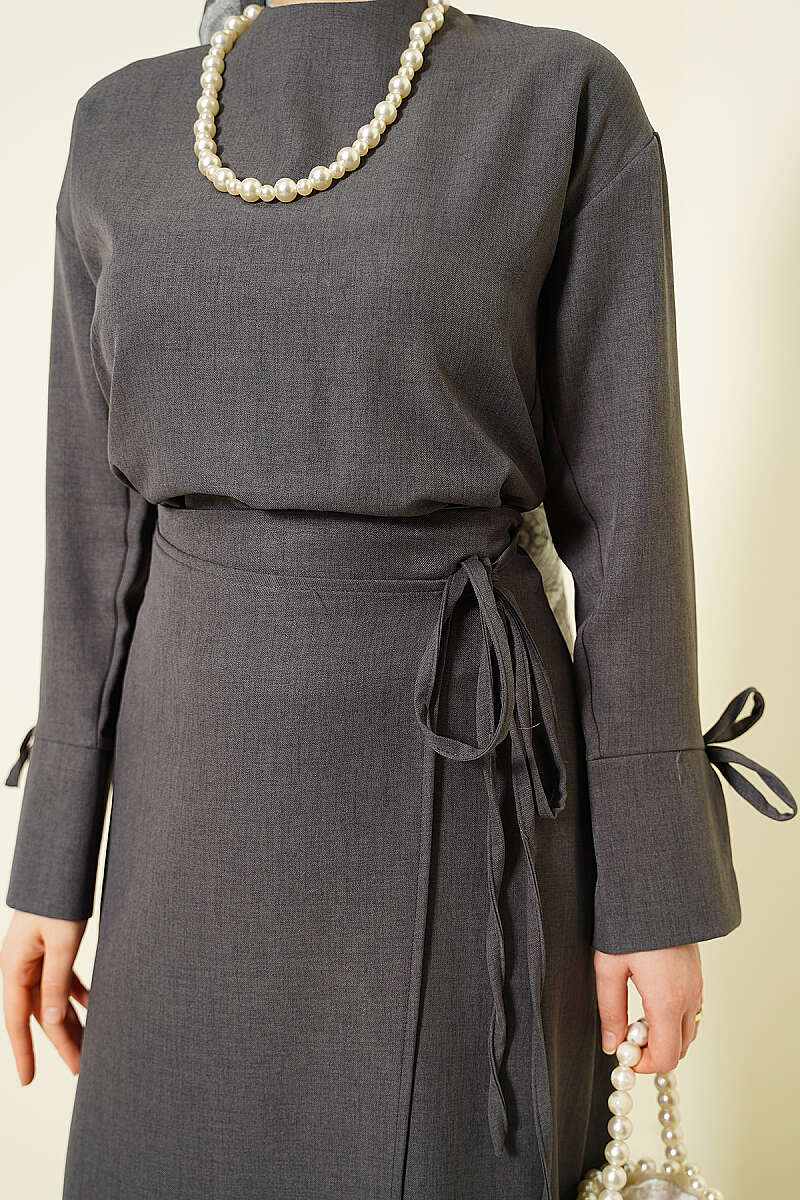 İp Bağcıklı Etekli Basic İkili Takım Füme